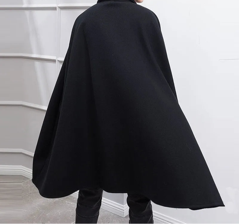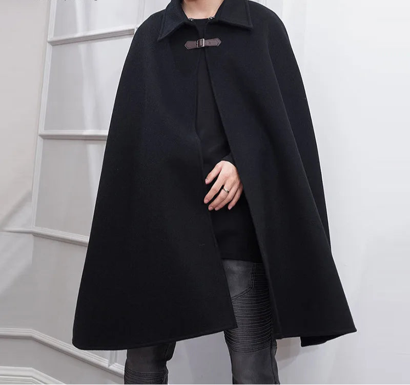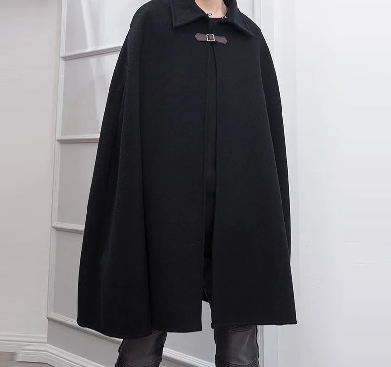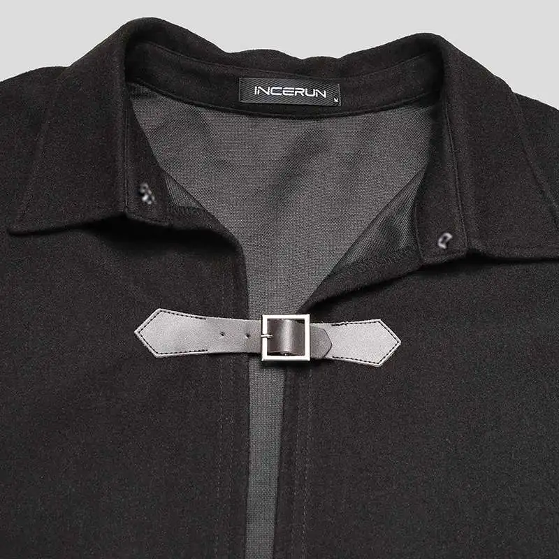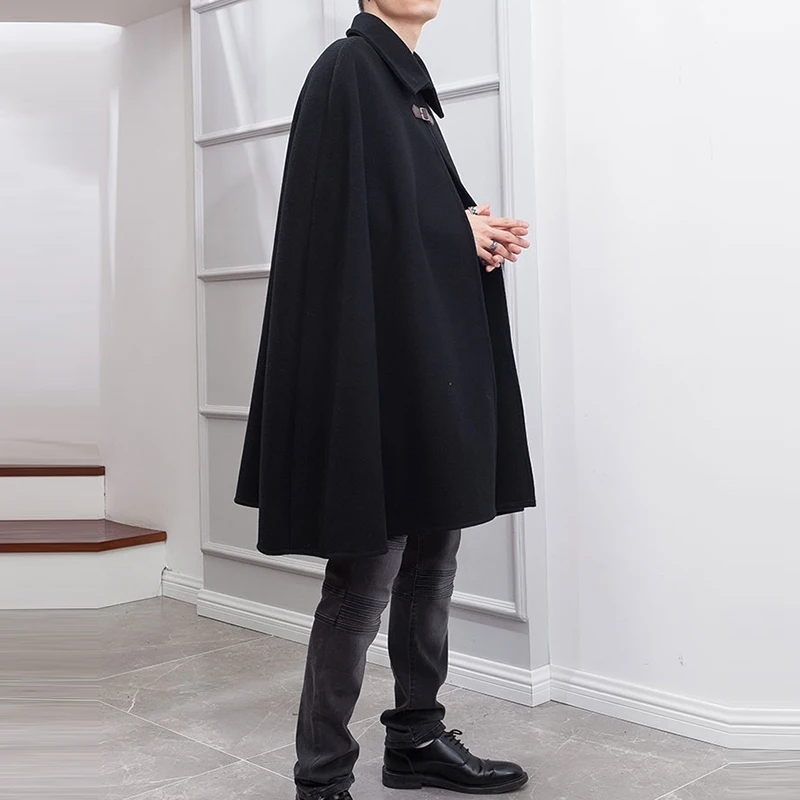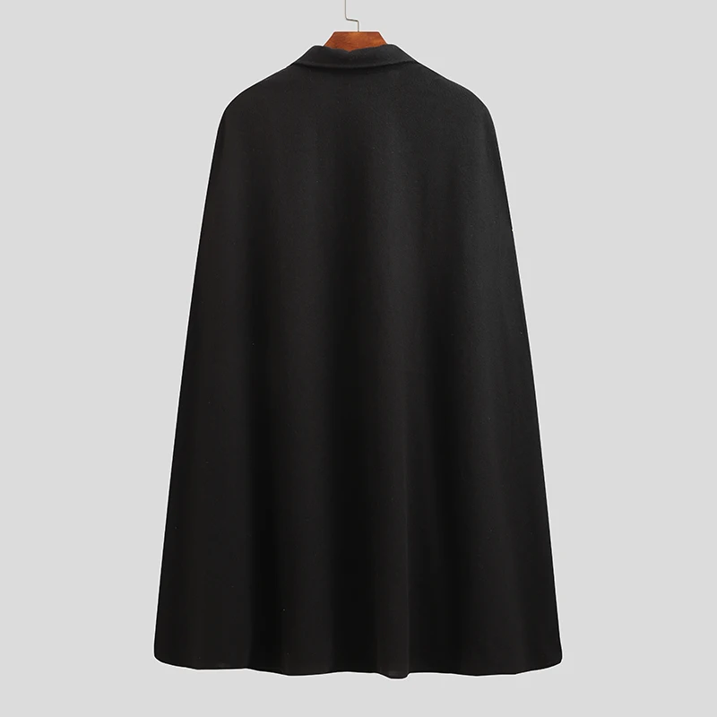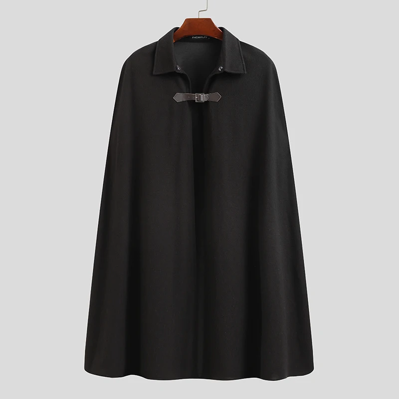 Fashion Men Cloak Coats Lapel Solid Color One Button Cape Trench Streetwear Casual Male Overcoats Ponchose S-5XL