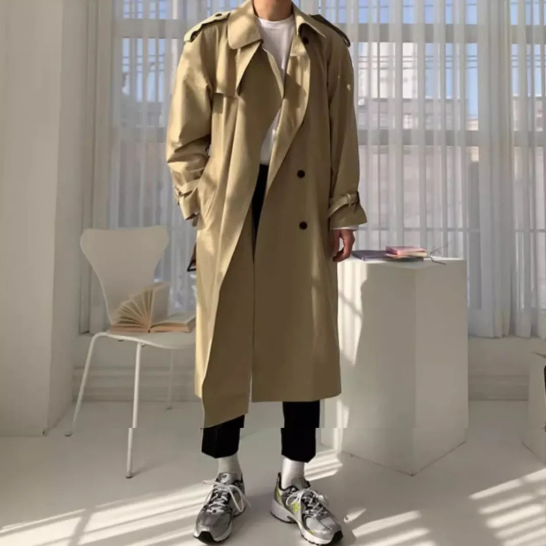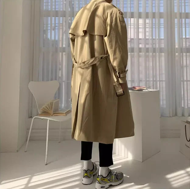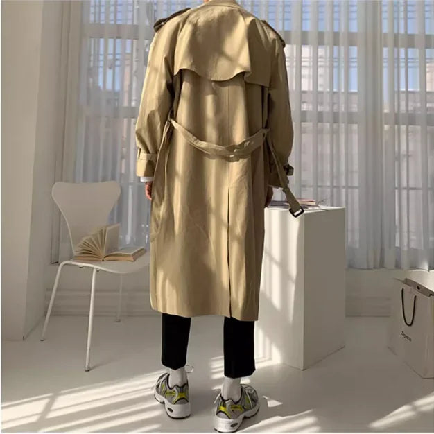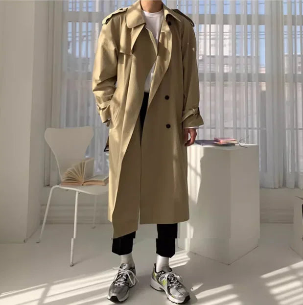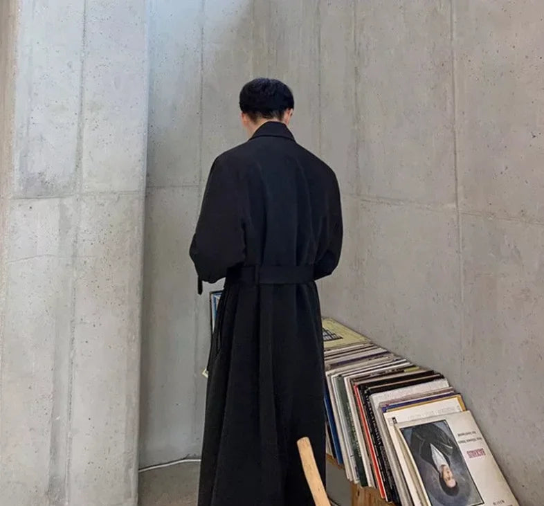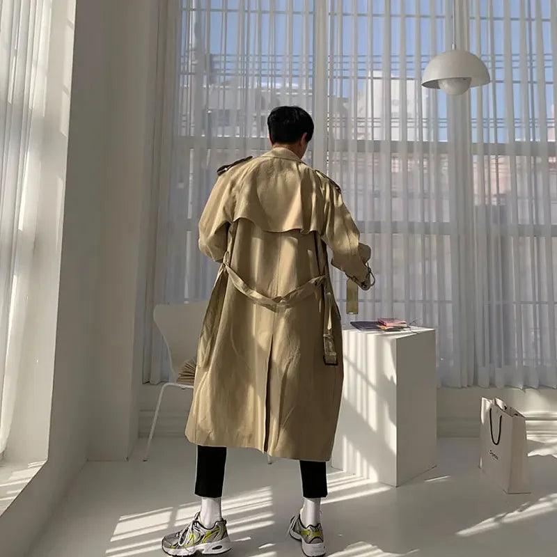 Korean Style Spring Trench Coat Man Streetwear Windbreaker Men Solid Business Casual Loose Sashe Fashion Long Overcoat 남성 트렌치코트