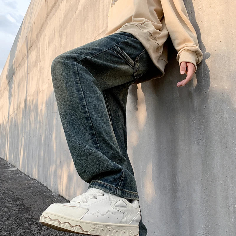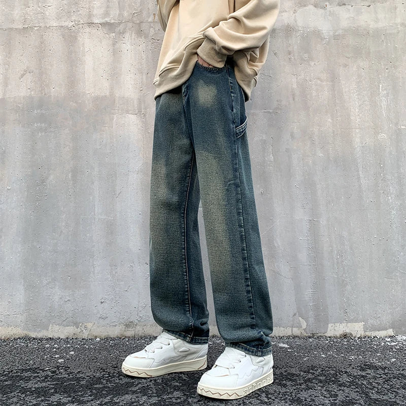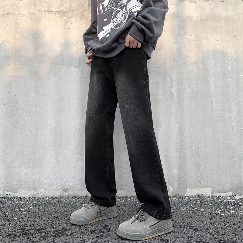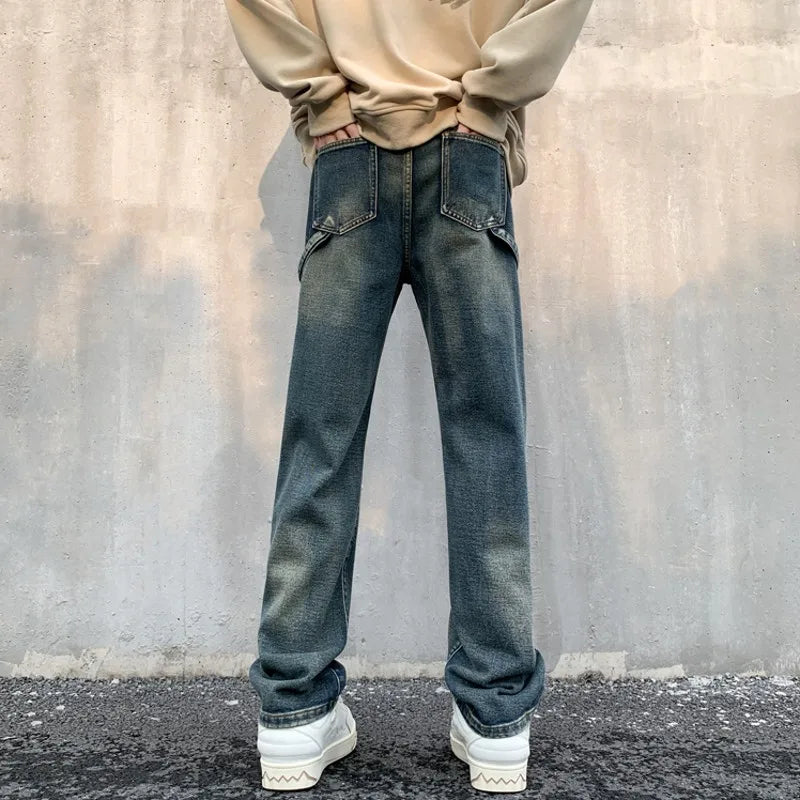 Fashion Vintage Mens Jeans Man Pants Gradient Straight Black Blue Distress Back Tape Casual Long Denim Trousers Hip Hop Clothing