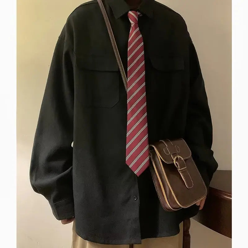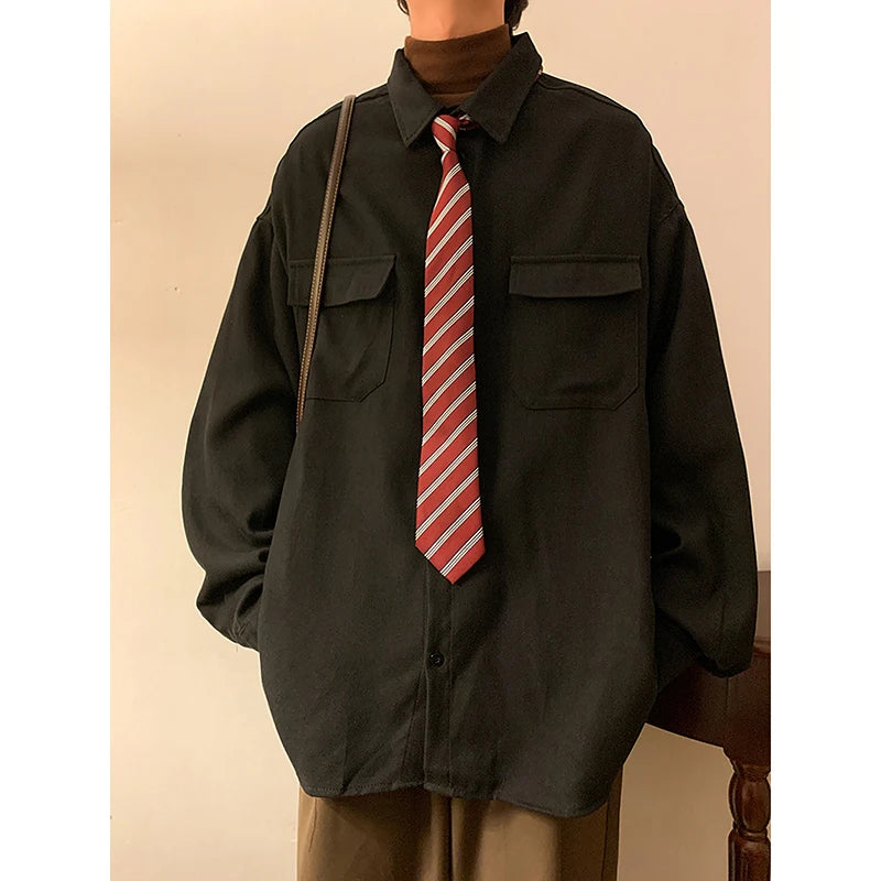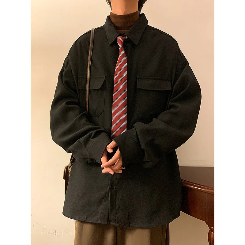 Spring Long Sleeved Shirt Men Fashion Retro Pocket Shirt Men Japanese Streetwear Loose Casual Shirt Mens Vintage Shirts M-3XL