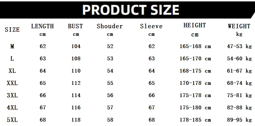 size_info: {"sizeInfoList":[{"length":{"cm":"104","inch":"40.94"},"size":"M","vid":361386},{"length":{"cm":"108","inch":"42.52"},"size":"L","vid":361385},{"length":{"cm":"110","inch":"43.31"},"size":"XL","vid":100014065},{"length":{"cm":"112","inch":"44.09"},"size":"XXL","vid":4182},{"length":{"cm":"114","inch":"44.88"},"size":"XXXL","vid":4183},{"length":{"cm":"116","inch":"45.67"},"size":"4XL","vid":200000990},{"length":{"cm":"118","inch":"46.46"},"size":"5XL","vid":200000991}]}