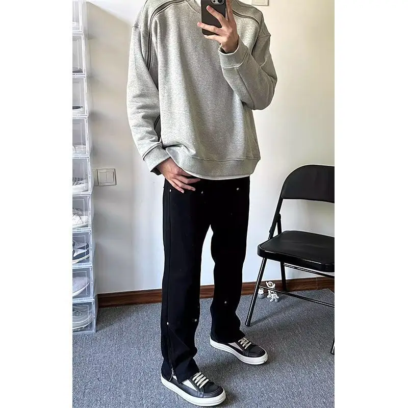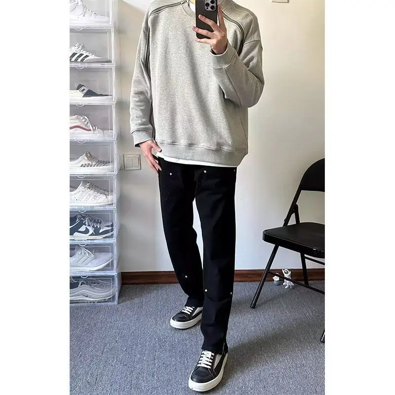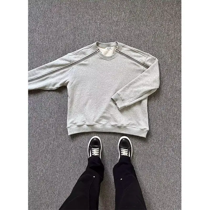 American autumn and winter street hip-hop trend personalized zipper design pullover for couples loose retro Harajuku top y2k