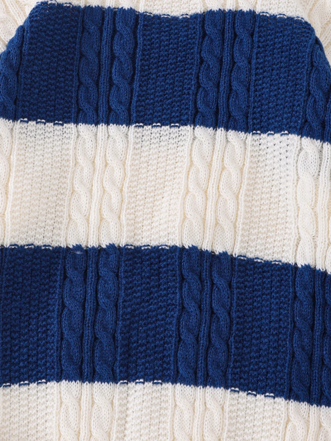 Autumn and Winter Striped Crew Neck Hemp Straw Style Casual Couple Sweater Versatile Trendy Men's Long-Sleeve Sweater Top