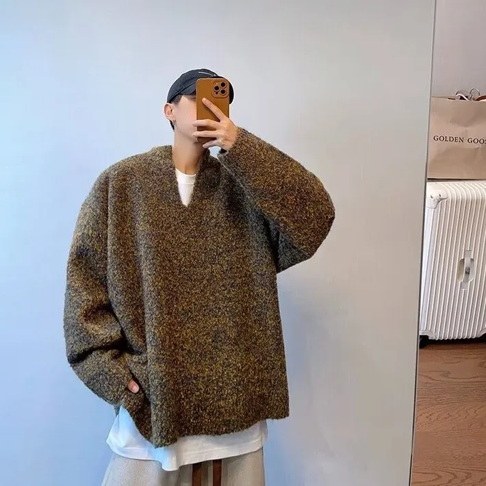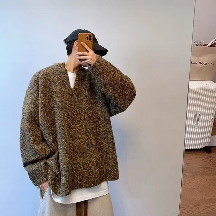 Baggy Pullovers Men Vintage Casual Knitwear All-match High Street Slouchy American Style Autumn Winter Sweaters Personality Chic
