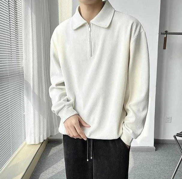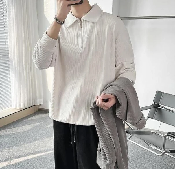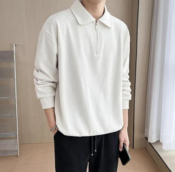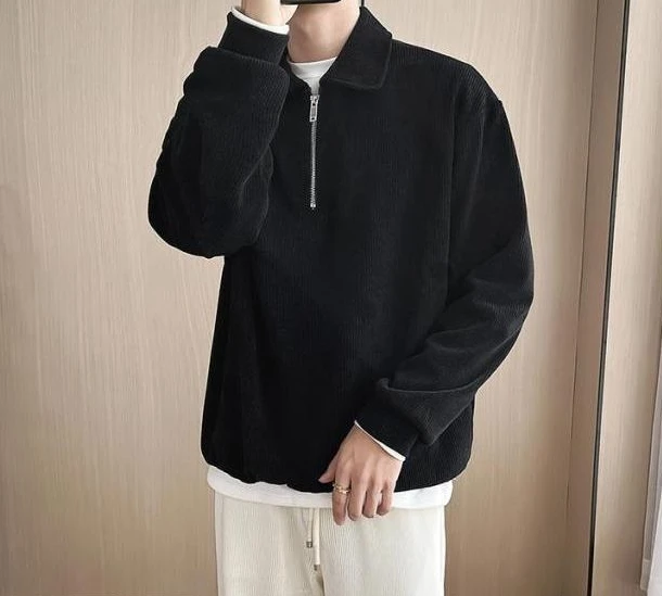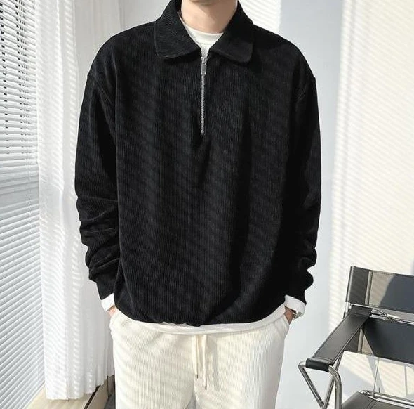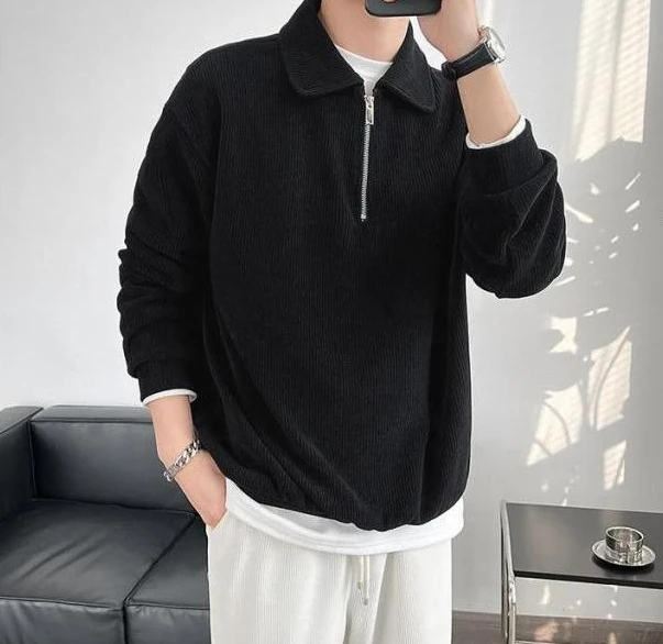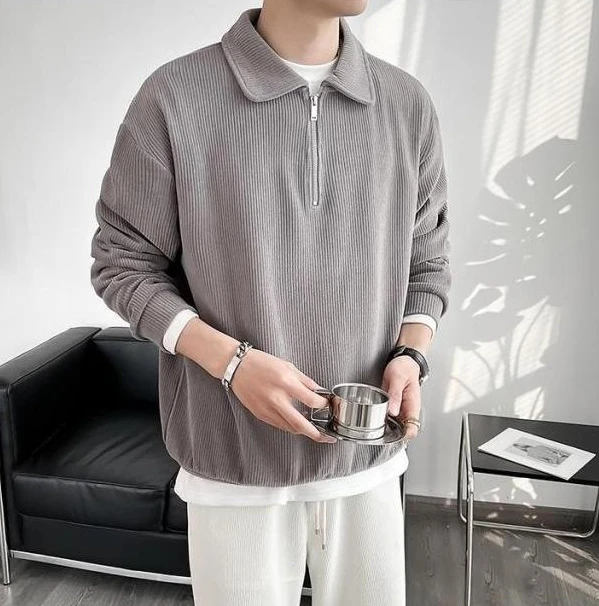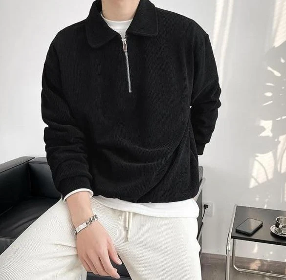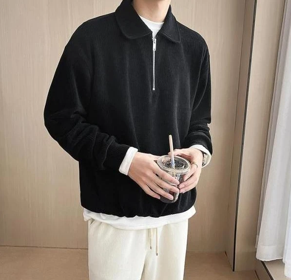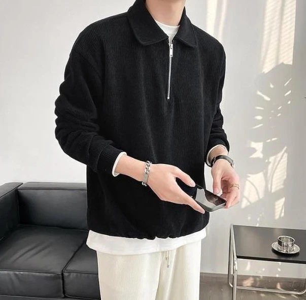 Male Clothes Solid Hoodieless Sweatshirt for Men Polo Sweat Shirt Blue Pullover Half Zip Top Streetwear Cotton Winter S Luxury