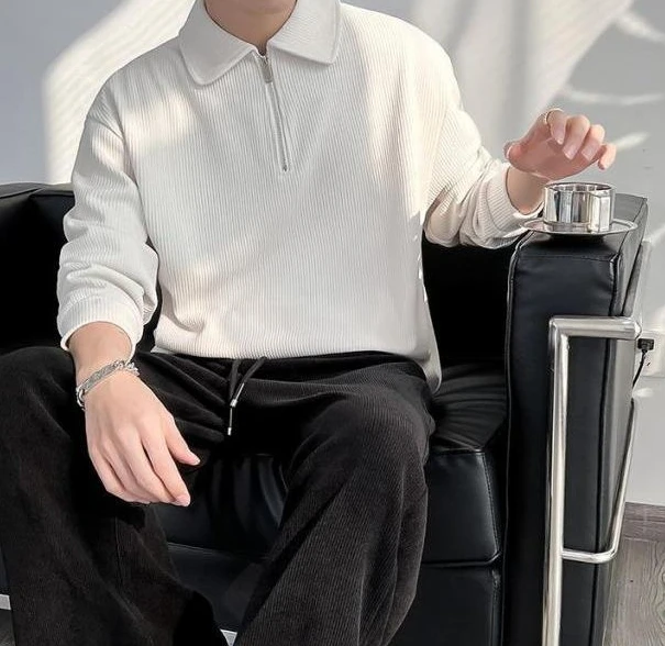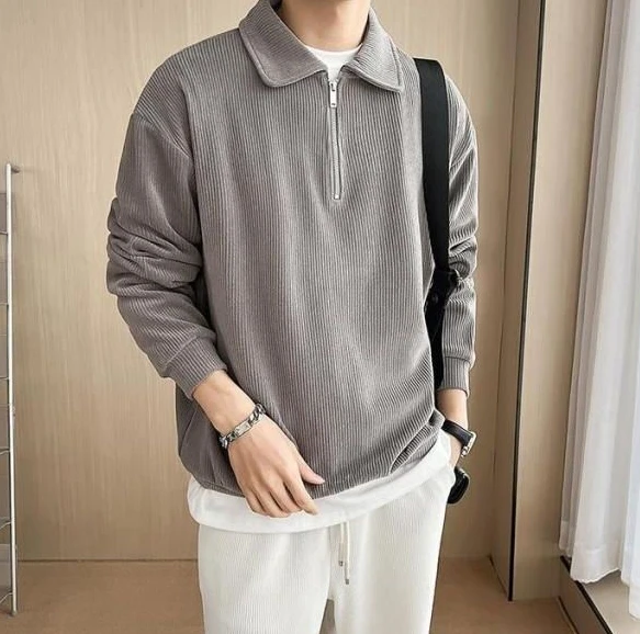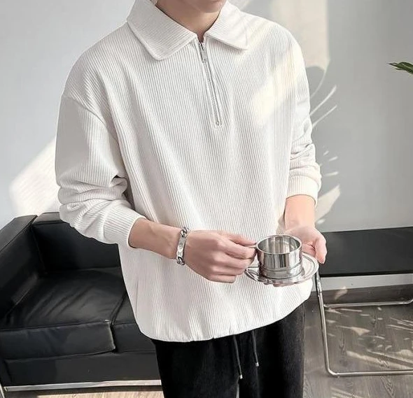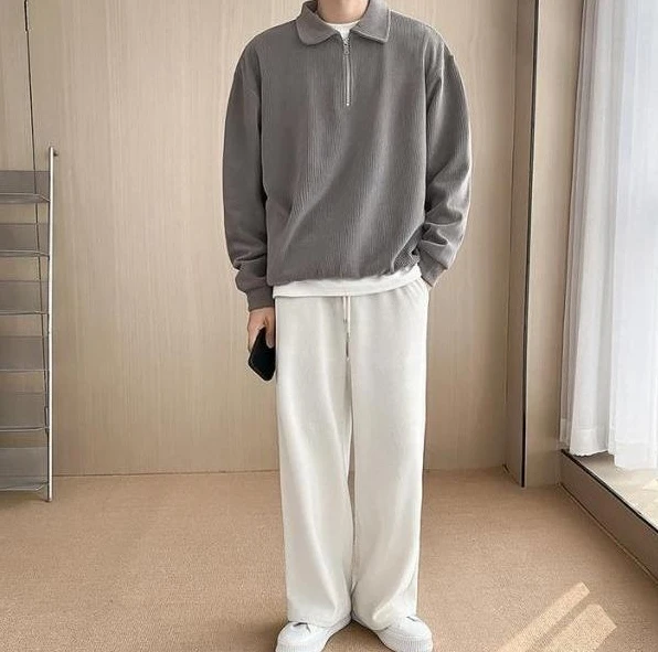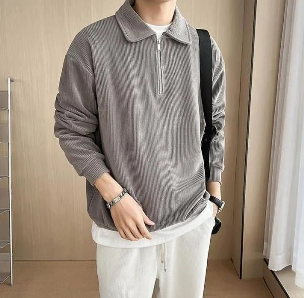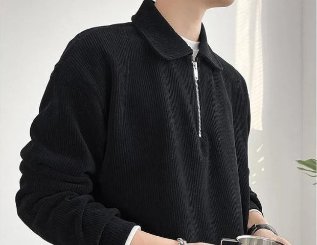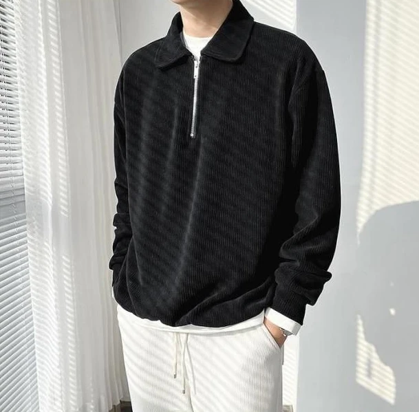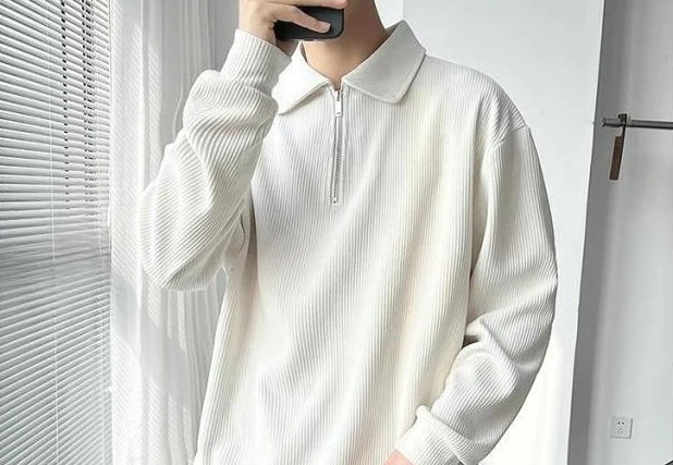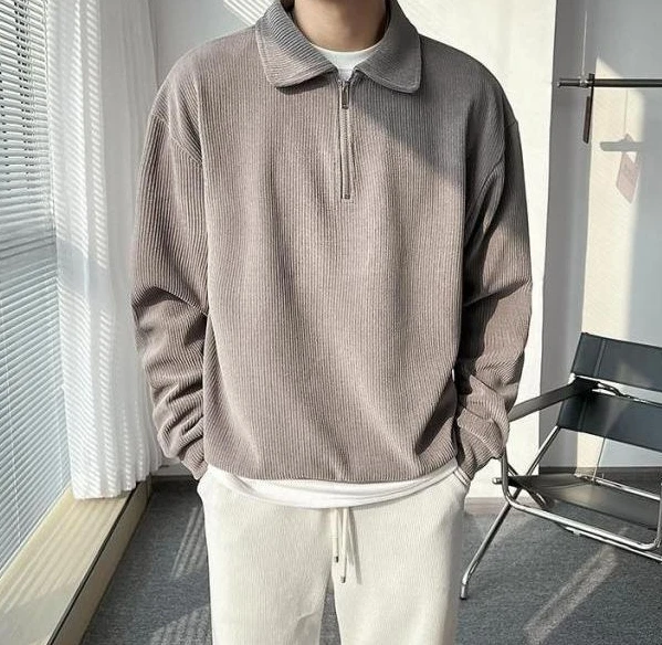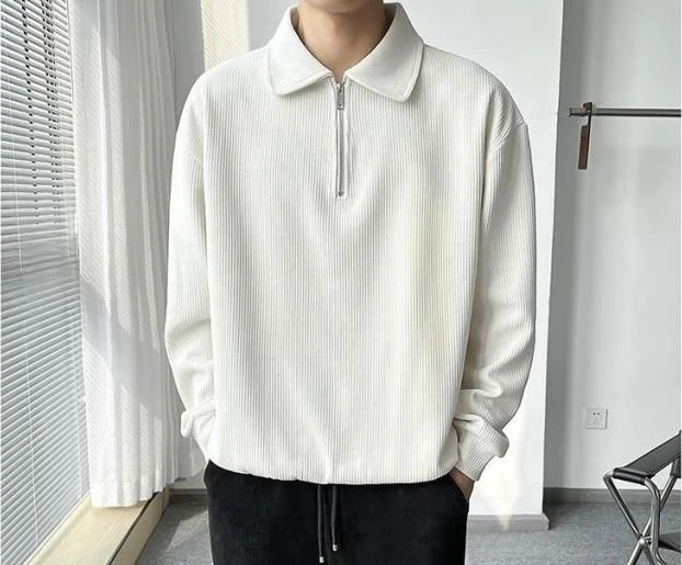 Male Clothes Solid Hoodieless Sweatshirt for Men Polo Sweat Shirt Blue Pullover Half Zip Top Streetwear Cotton Winter S Luxury