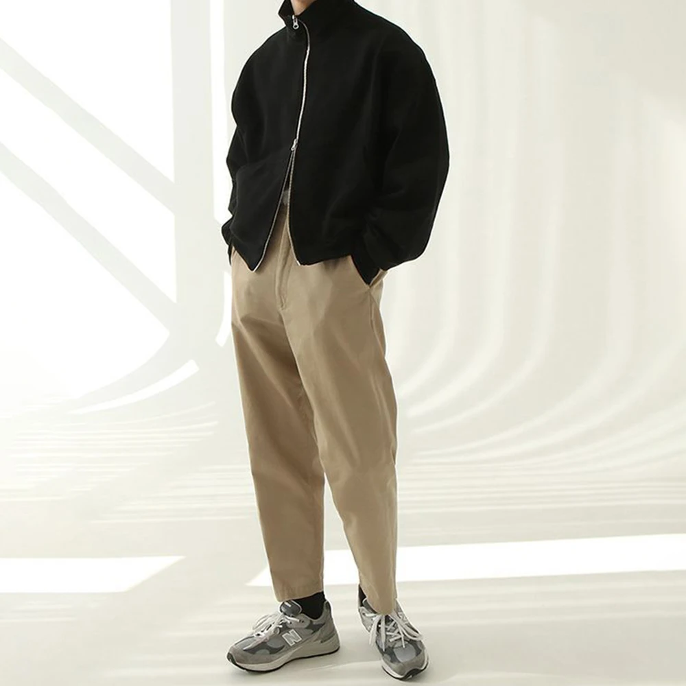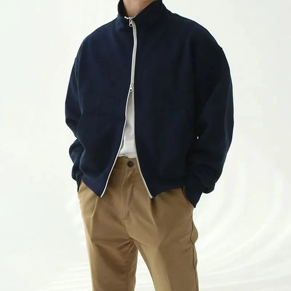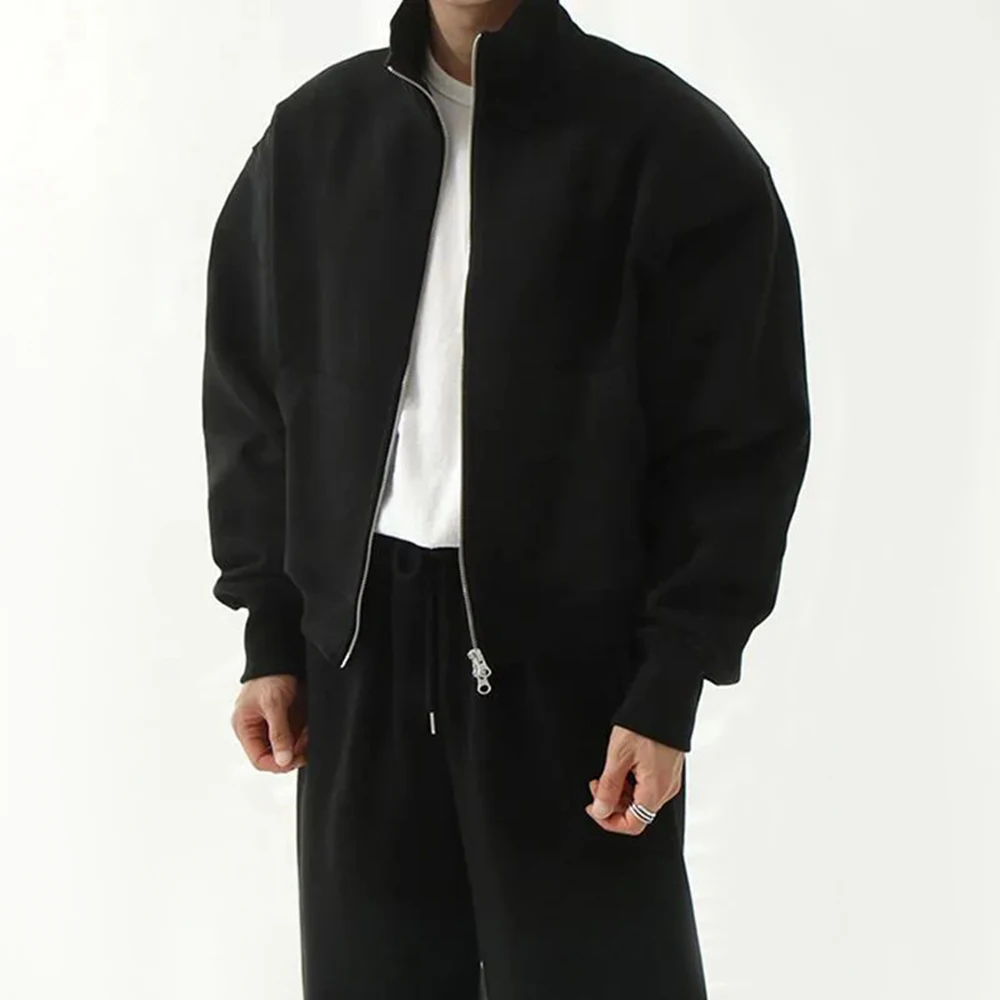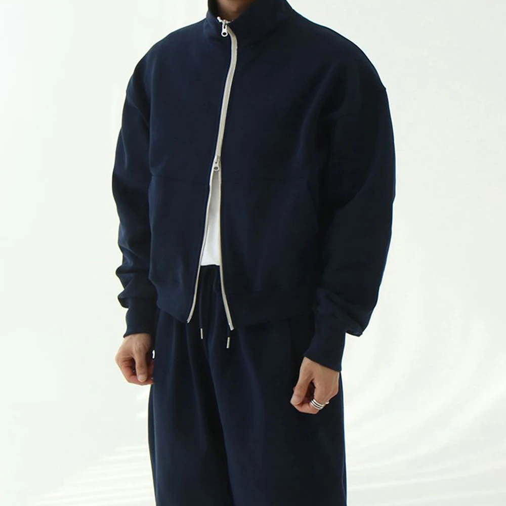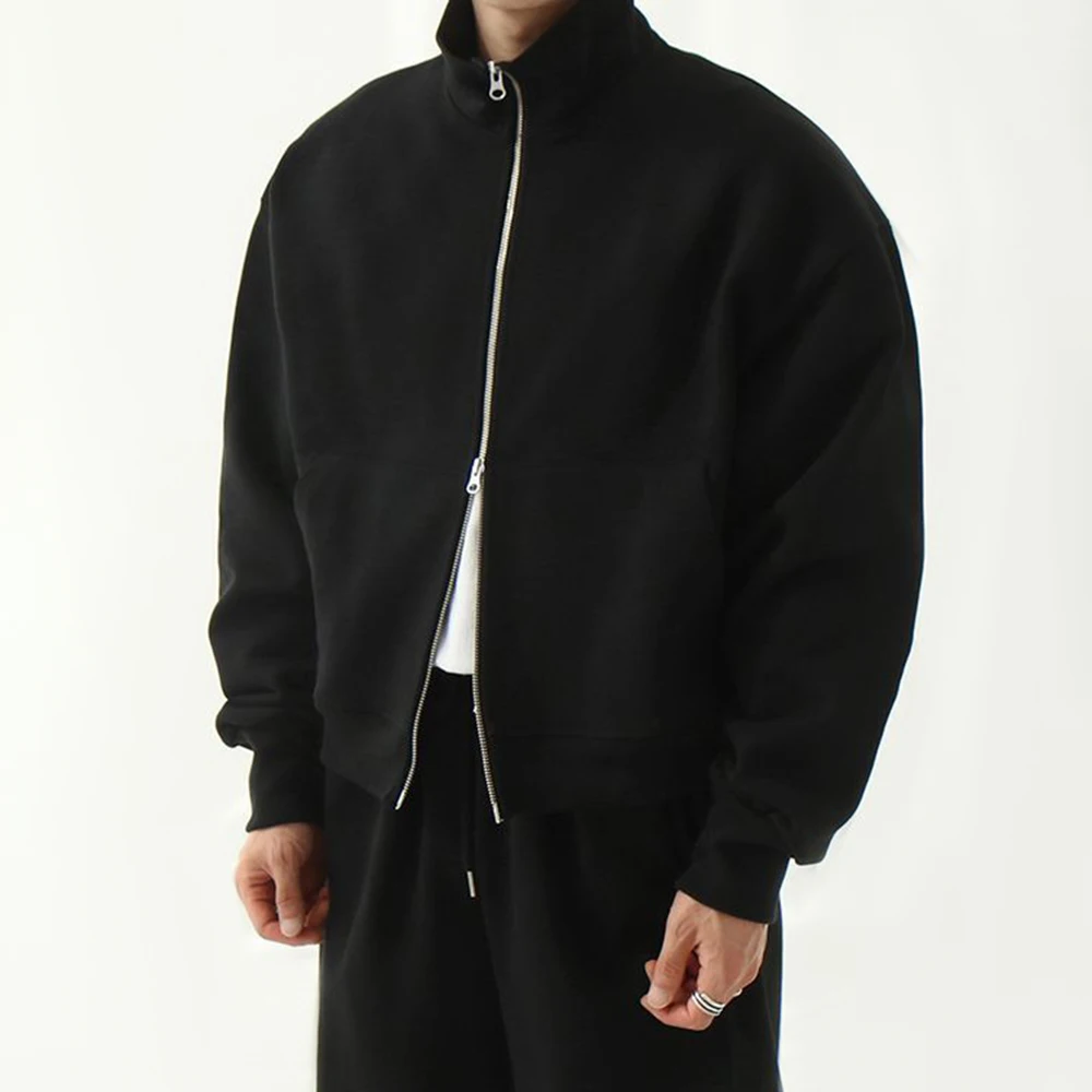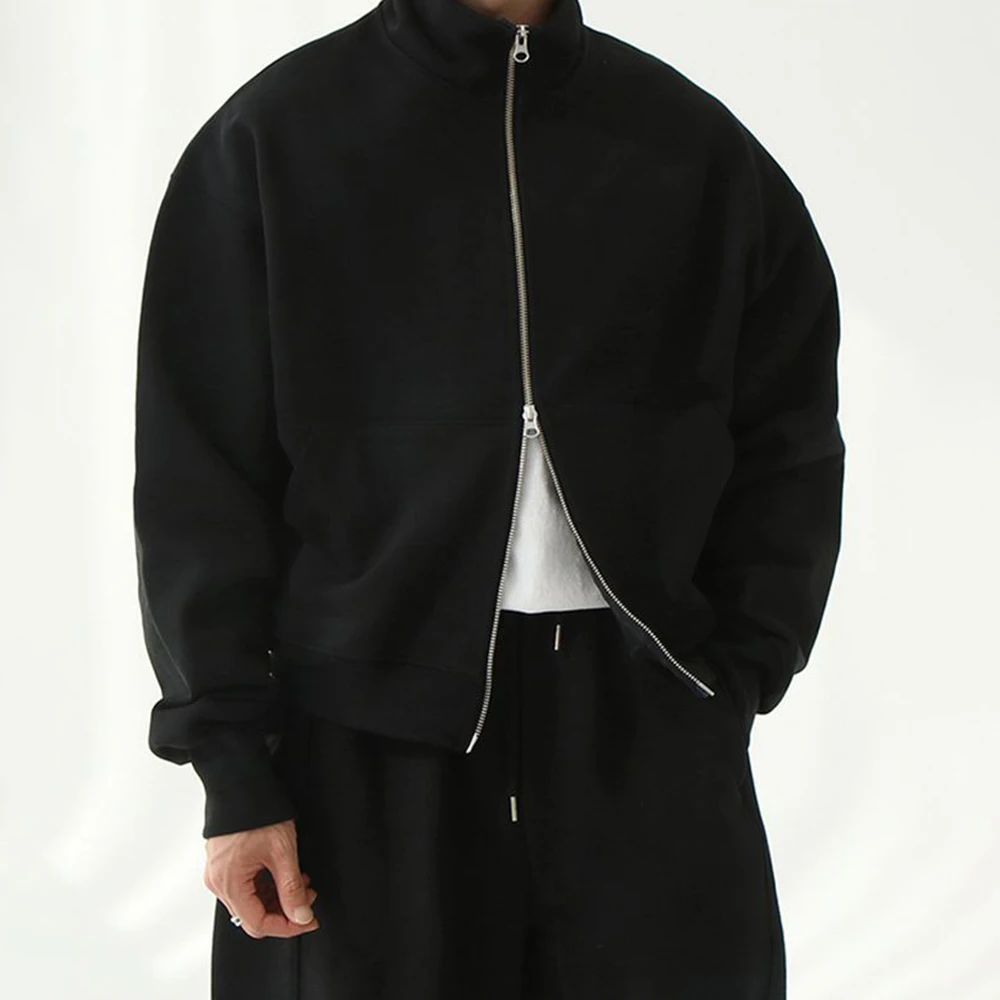 Mens Autumn Winter Harajuku Two-Way Zipper Cardigan Sweatshirt Genderless Essential Fashion Casual Short Stand-Collar Jacket