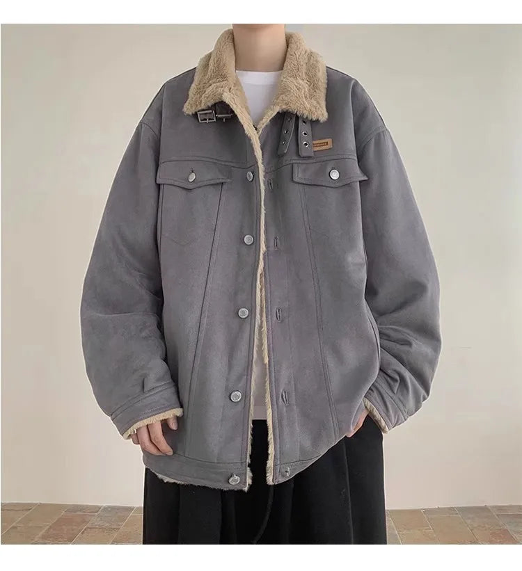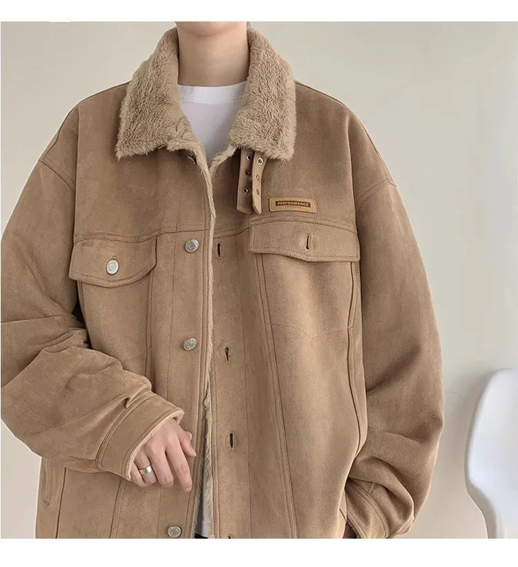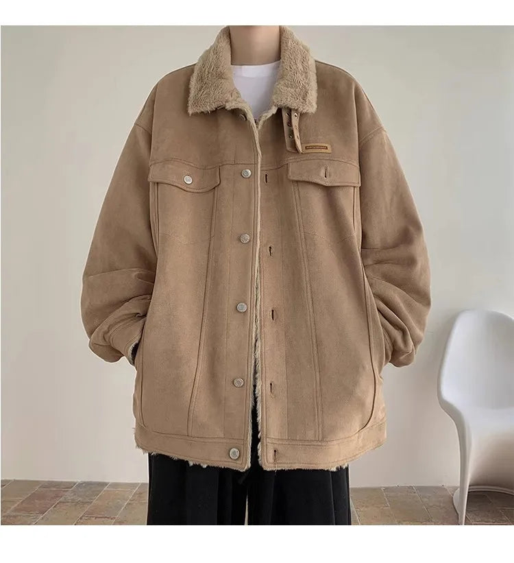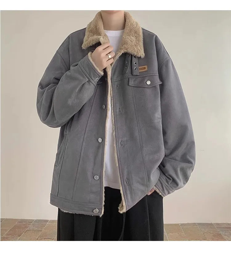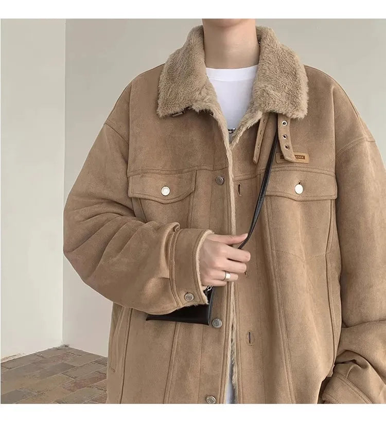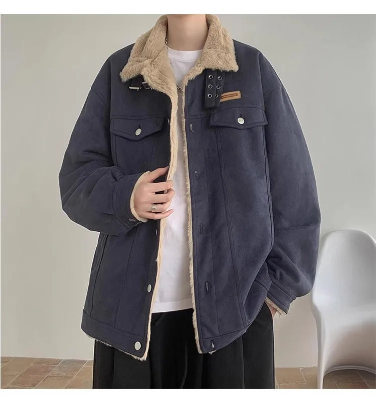 New American Fleece-lined Men Padded Jackets Luxury Harajuku Long Sleeve Streetwear Winter Trendy Chic Turn-down Collar Coats