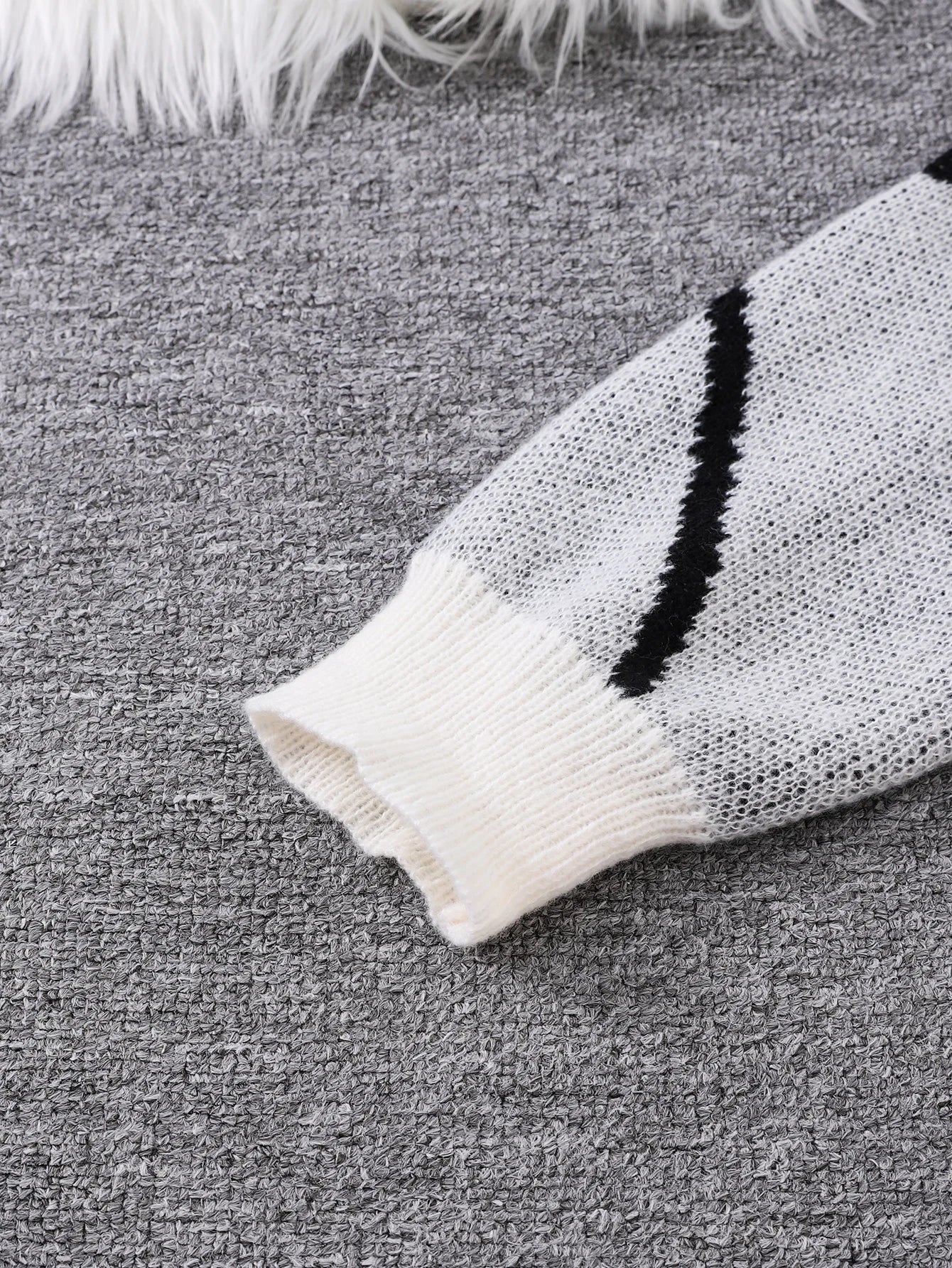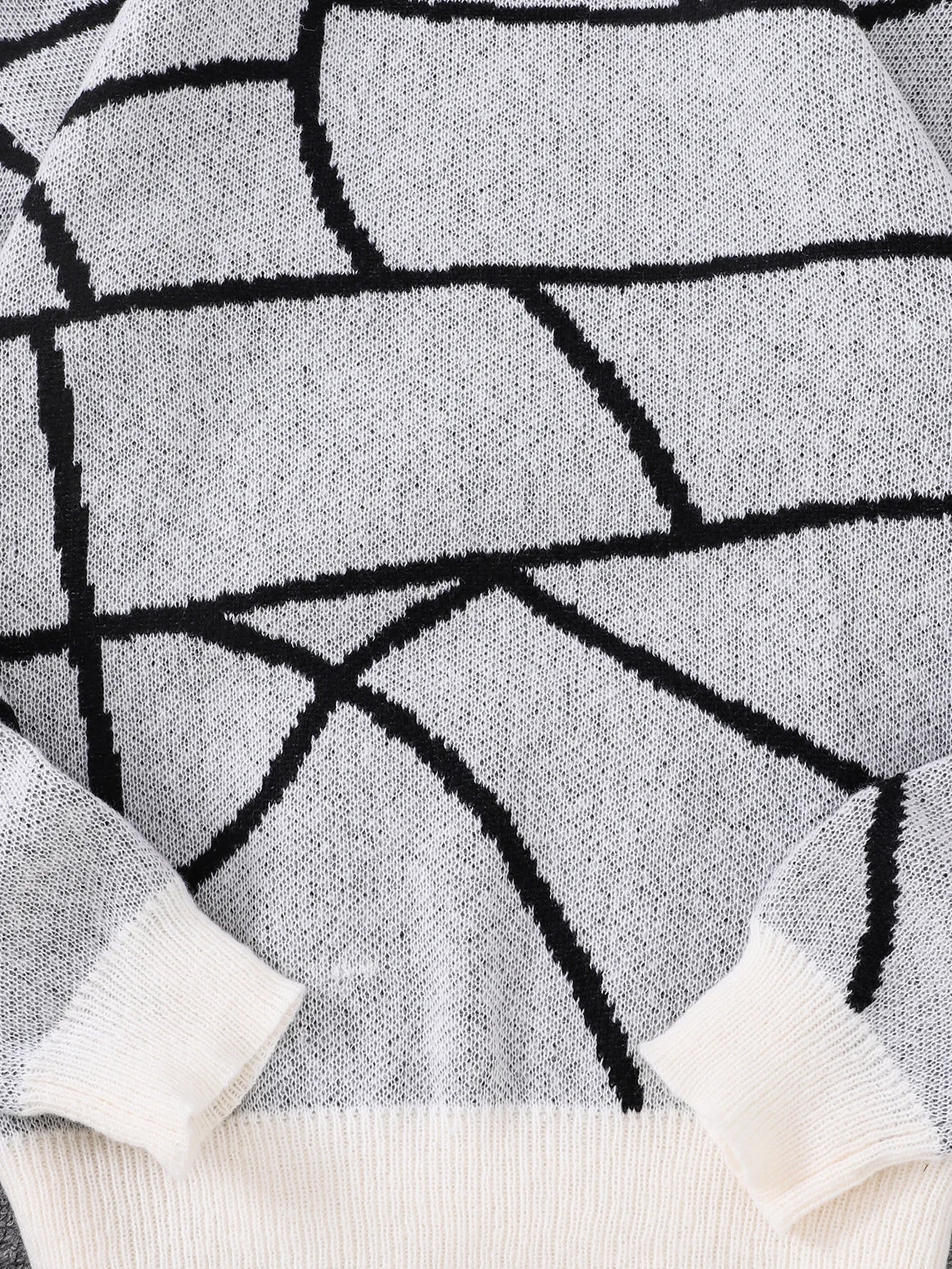New Popular Autumn and Winter Broken Pattern Pullover Sweater Casual Round Neck Contrast Color Knitted Men's Pullover