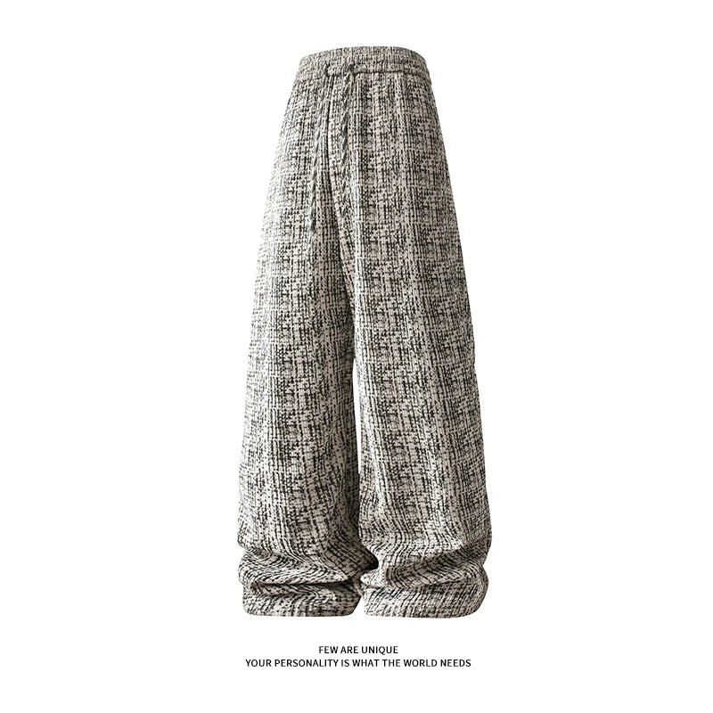 Winter Korean Men's Fleece Warm Casual Wide Leg Pants Trendy Straight Long Pants Elastic Waist Sweatpants Thermal Trousers