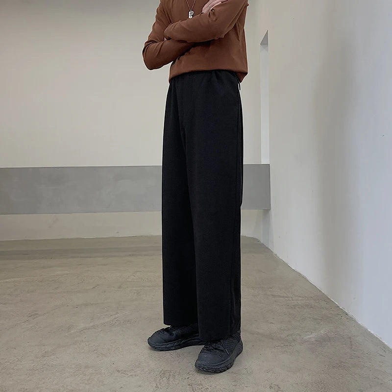 Winter Thick Woolen Pants Men's Warm Fashion Black Brown Casual Pants Men Korean Loose Straight-leg Pants Mens Trousers S-2XL