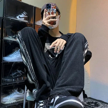 Autumn and Winter Corduroy Straight Trousers Striped Wide Leg Sweatpants for Men Goth Big Size Essential Casual Man Sports Pants