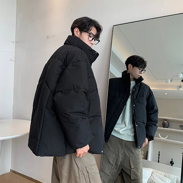 New Winter Silk-like Cotton Jackets Men Fashion Thicken Warm Parkas Couple Streetwear Loose Casual All-match Bread Coat