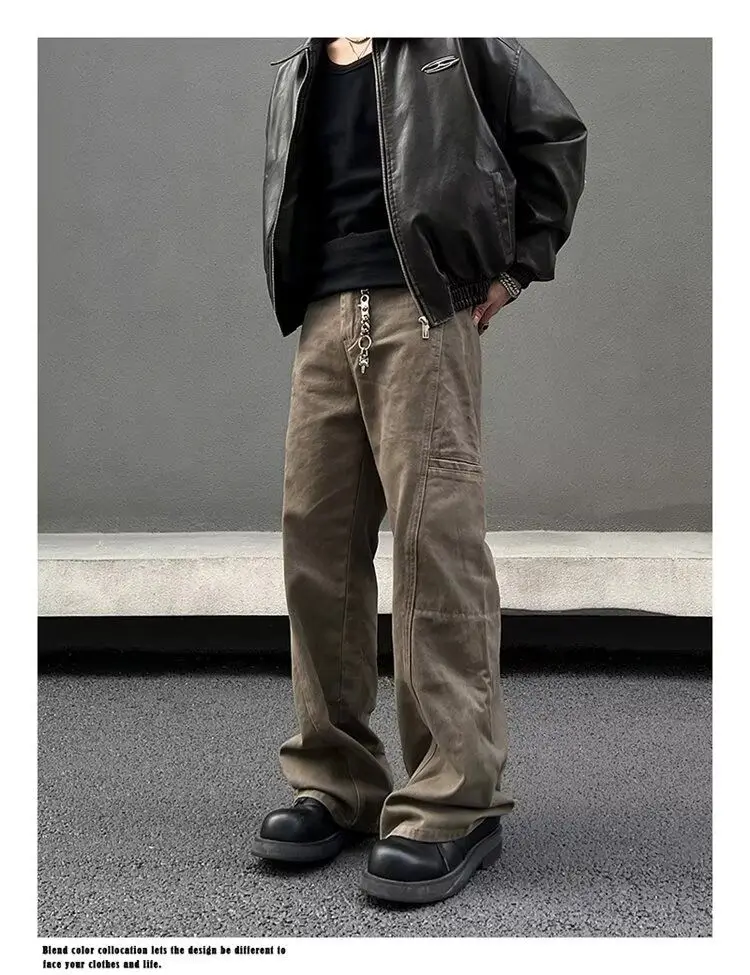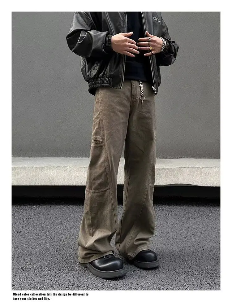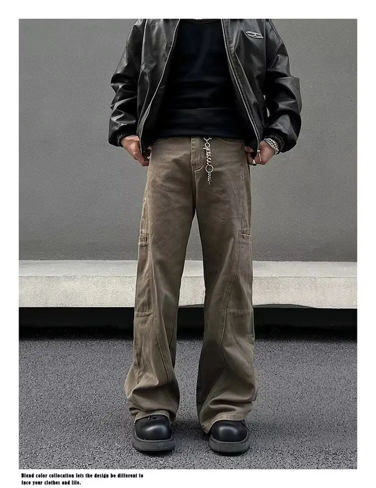 American retro men and women hip-hop high street personality straight leg workwear jeans couple trend retro casual pants y2k