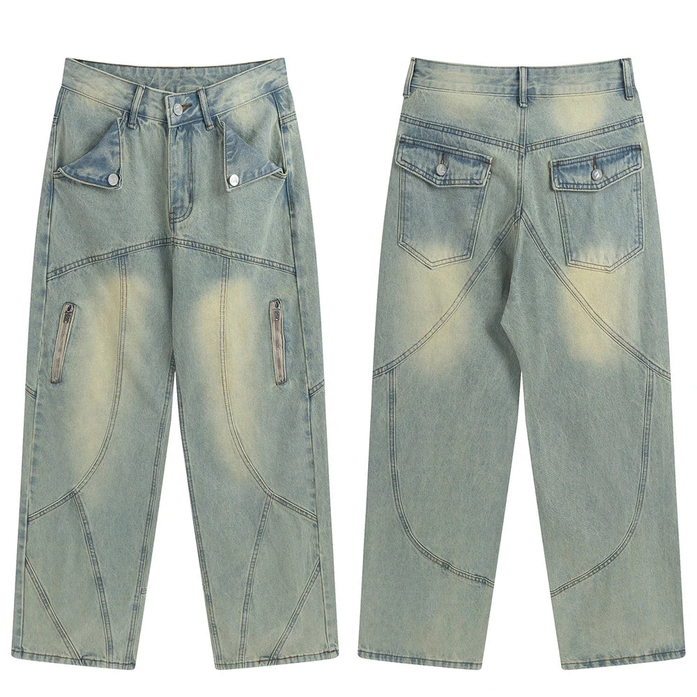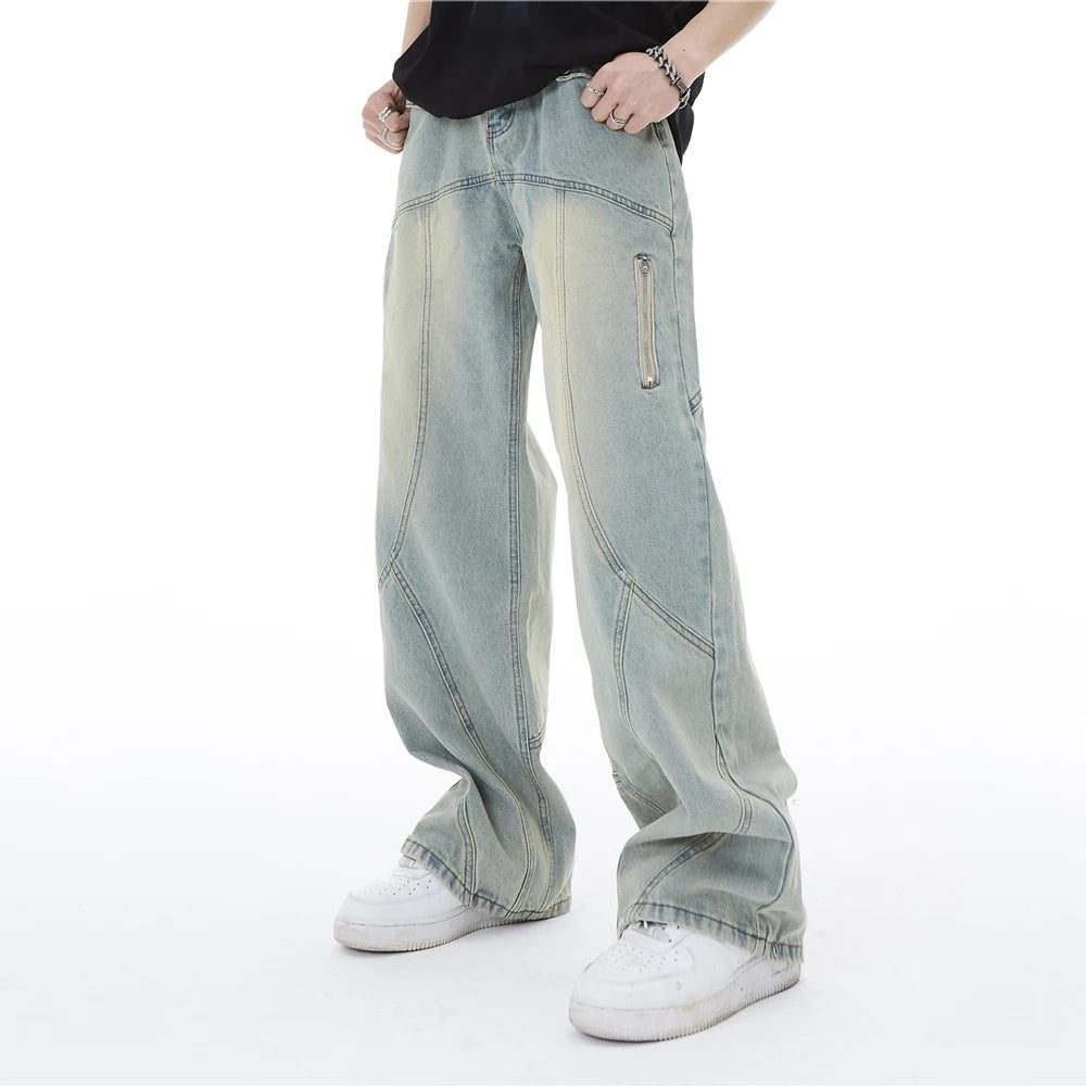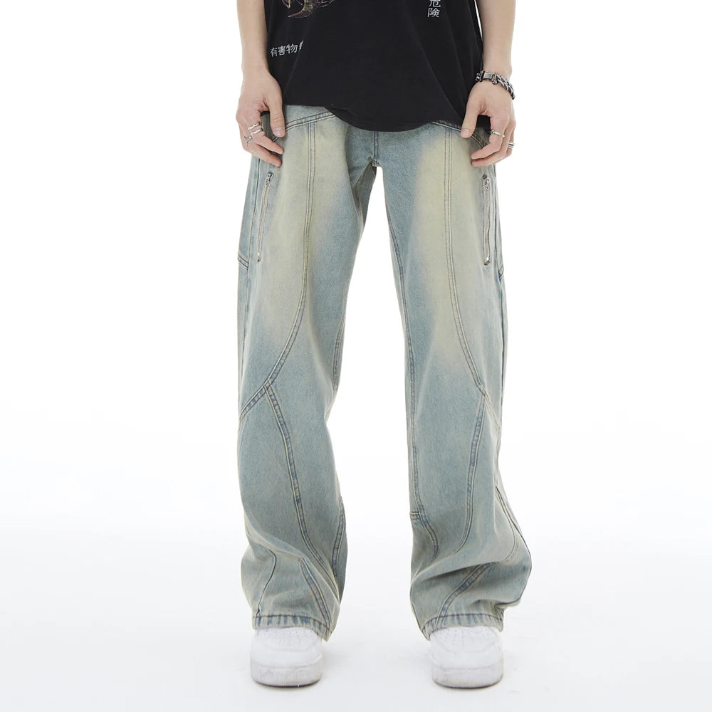 Baggy Jeans Men Wide Leg Straight-leg Topstitched Seam Solid Unisex Dance Hip Hop Rap Loose Trousers Y2k High Street Denim Pants
