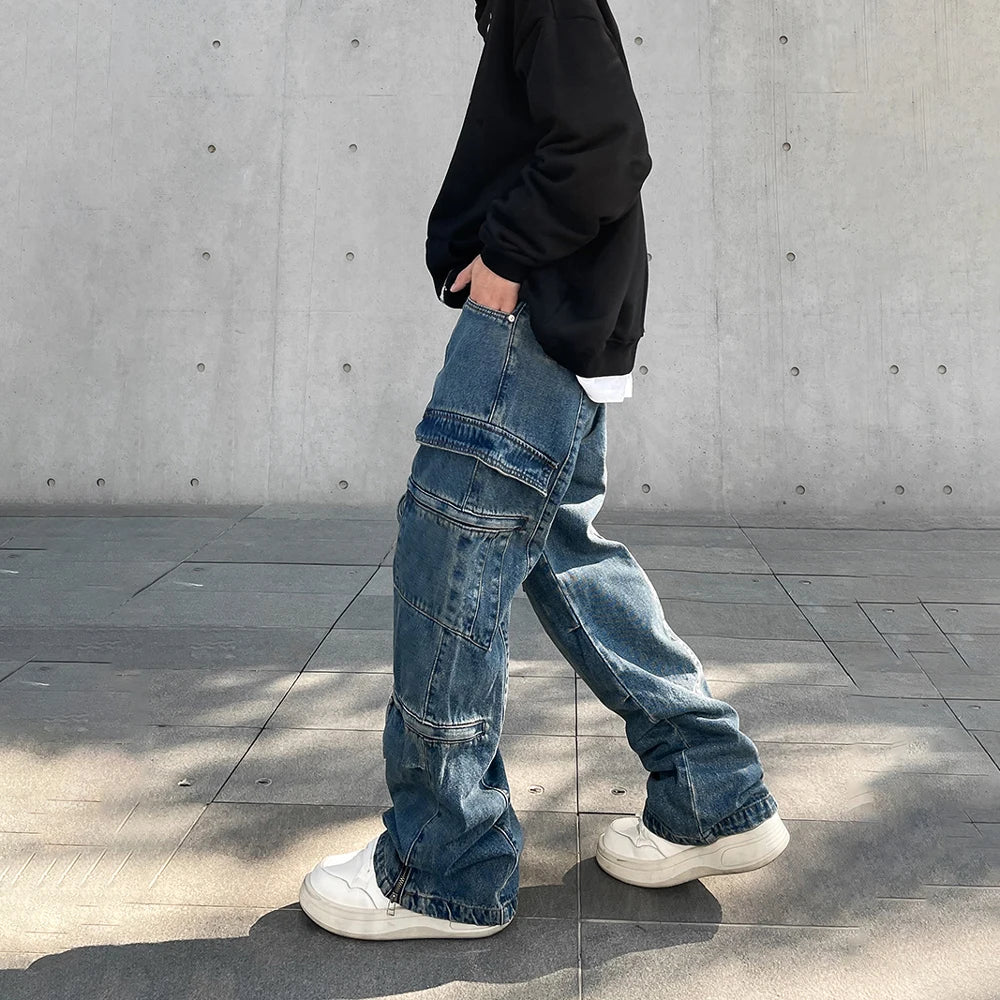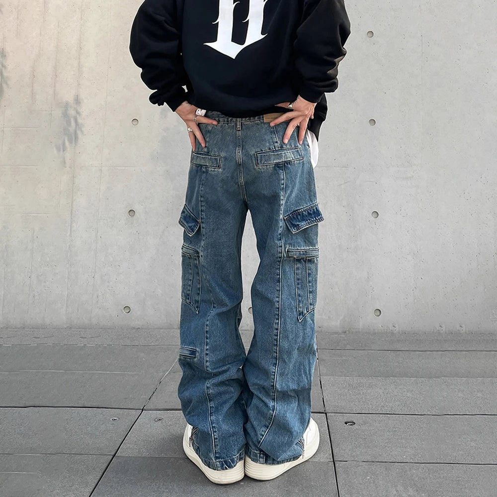 Cargo Jeans Men Big Pocket Loose Autumn Vaqueros Pantalones Hombre Streetwear Casual Blue Trousers Y2k Baggy Winter Denim Pants