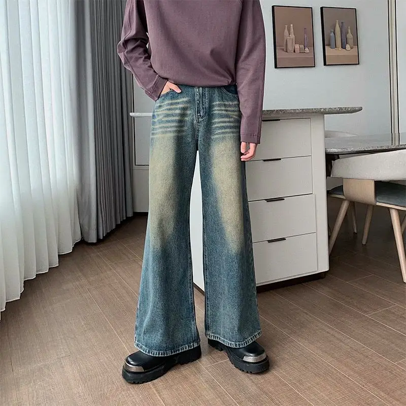 Hip hop men and women trendy personality straight tube washed retro jeans American couple high street loose casual pants y2k