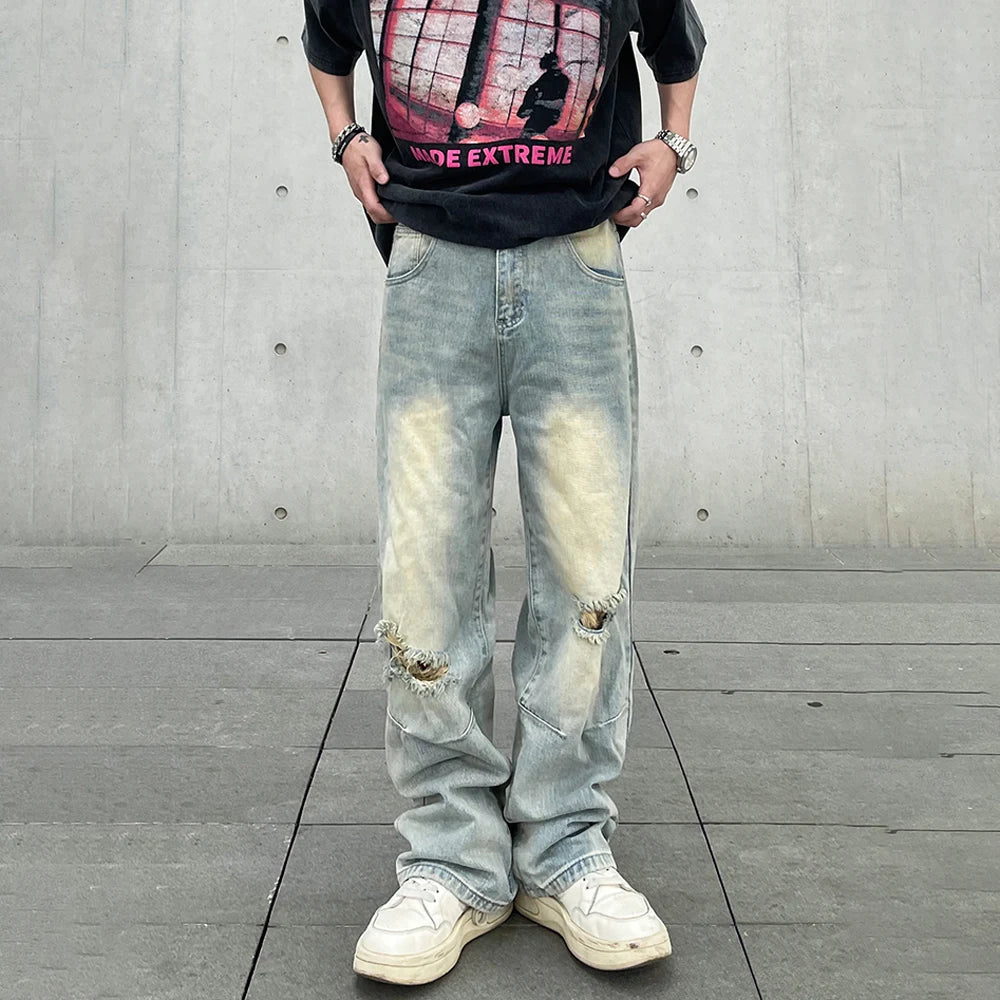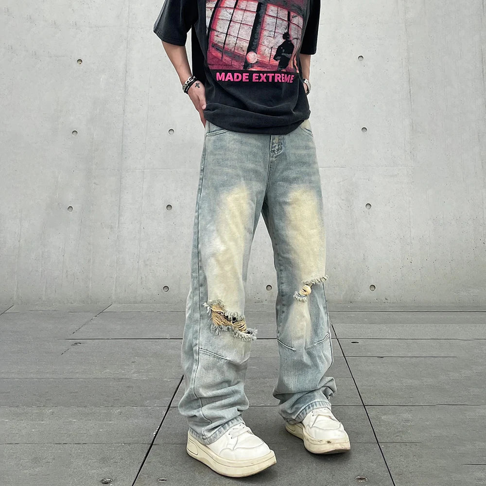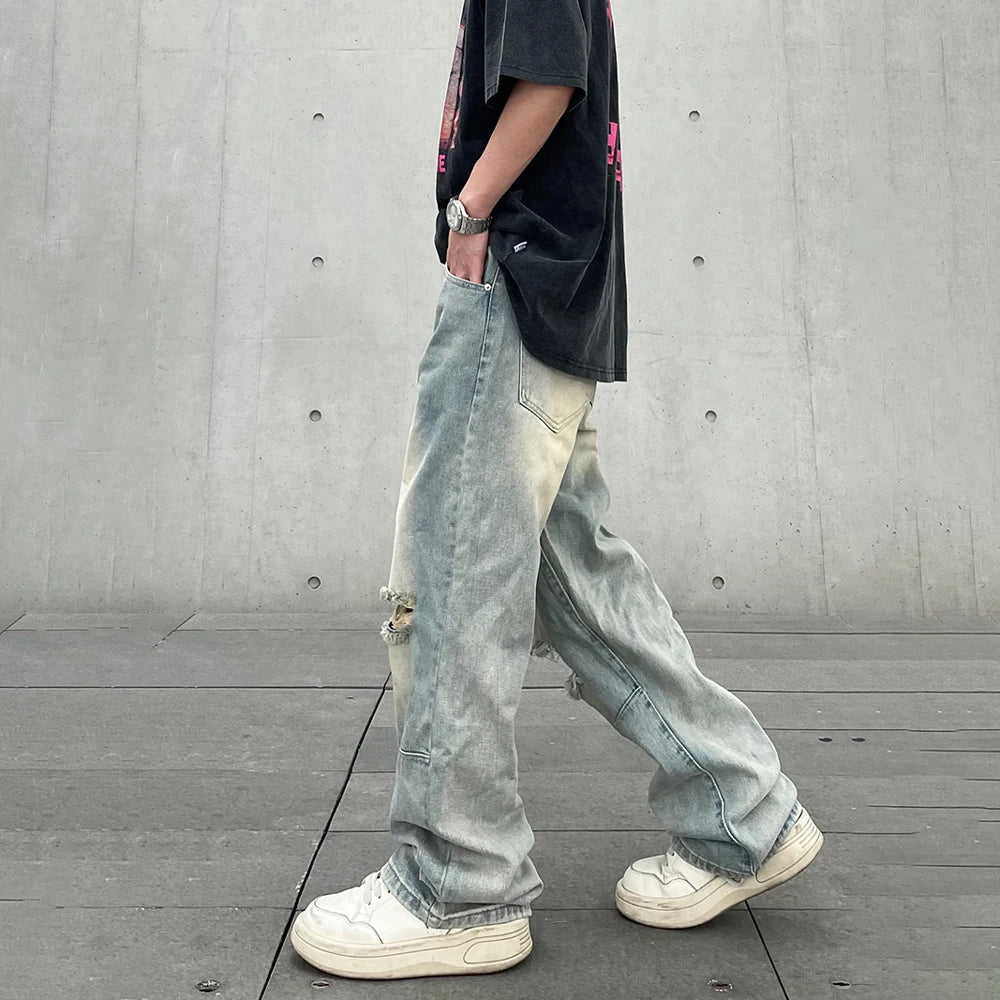 Ripped Jeans Men Baggy Streetwear Hip Hop Oversized Wide Leg Vaqueros Pantalones Hombre Loose Street Trousers Y2k Denim Pants