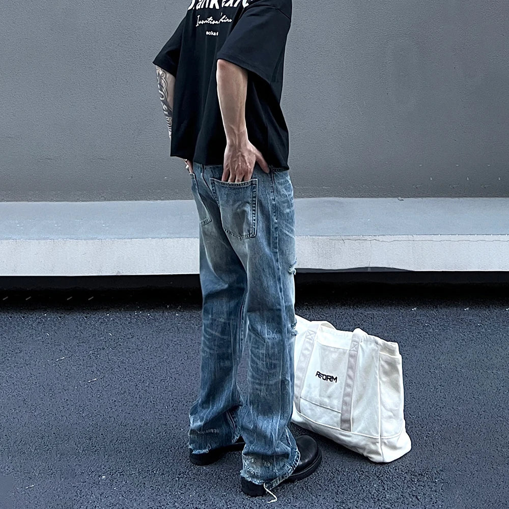 Ripped Jeans Men Designer Streetwear Loose Y2k Flared Trousers Summer Vintage Street Casual Fashion Autumn Wide Leg Denim Pants