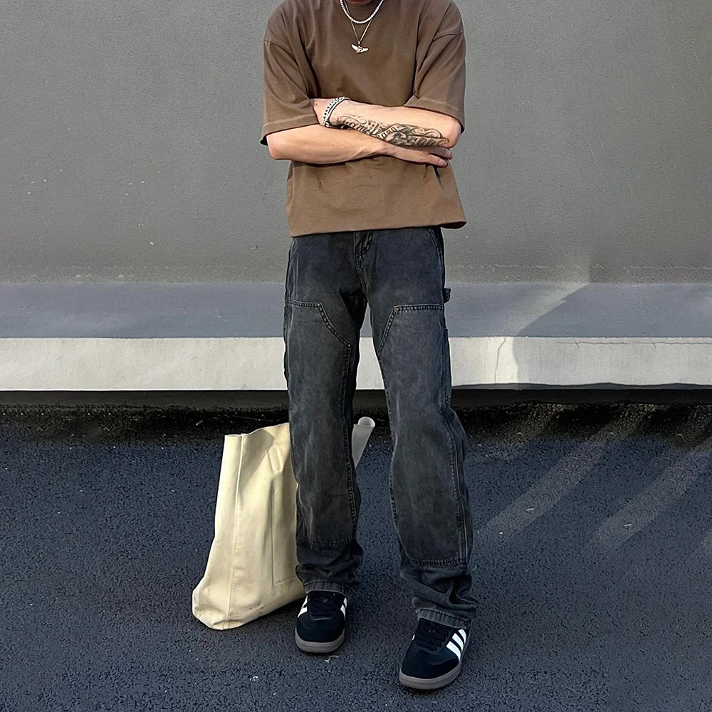 Autumn Vintage Skull Print Loose Straight Pant Men Summer New Fashion Trousers Street Hipster Casual Pants Mens Streetwear