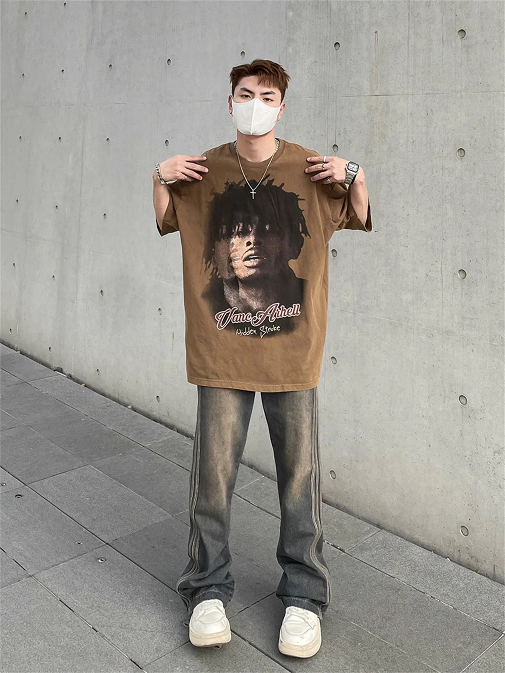 Autumn Vintage Skull Print Loose Straight Pant Men Summer New Fashion Trousers Street Hipster Casual Pants Mens Streetwear