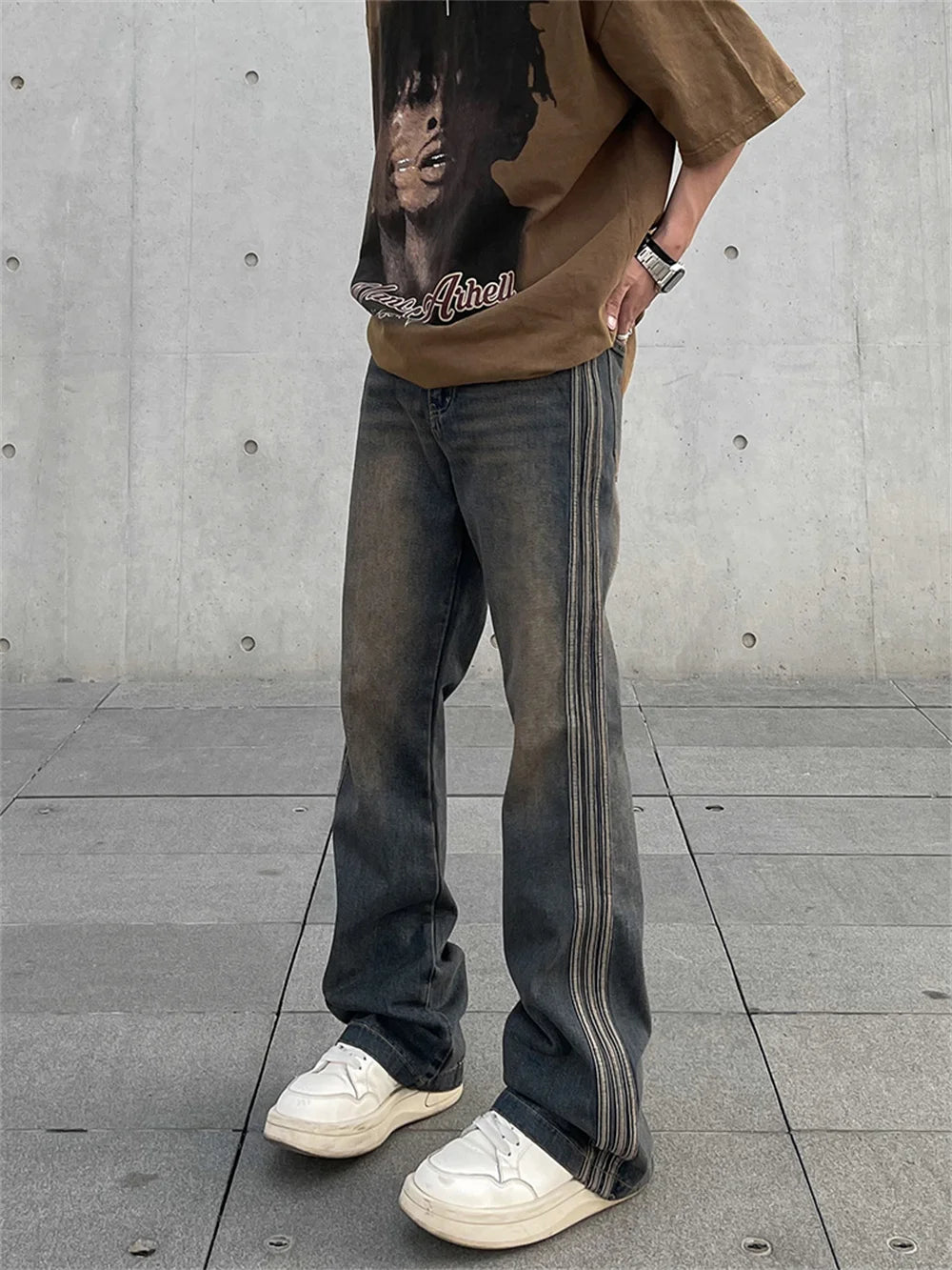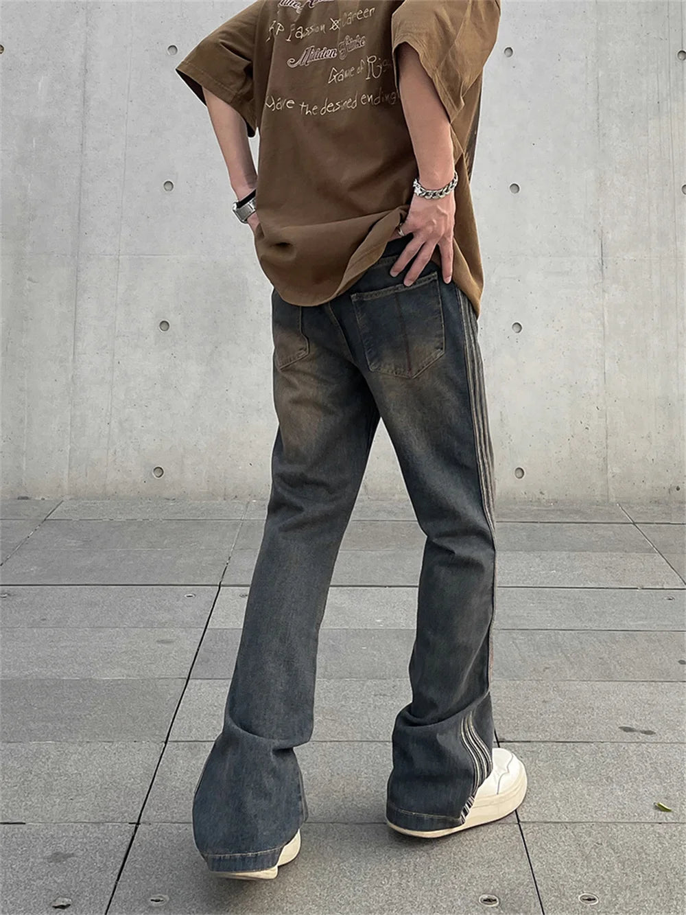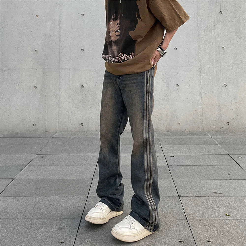 Vintage Jeans Men Slim Flared Trousers Autumn Streetwear Casual Vaqueros Pantalones Hombre Winter Y2k Fit Street Denim Pants