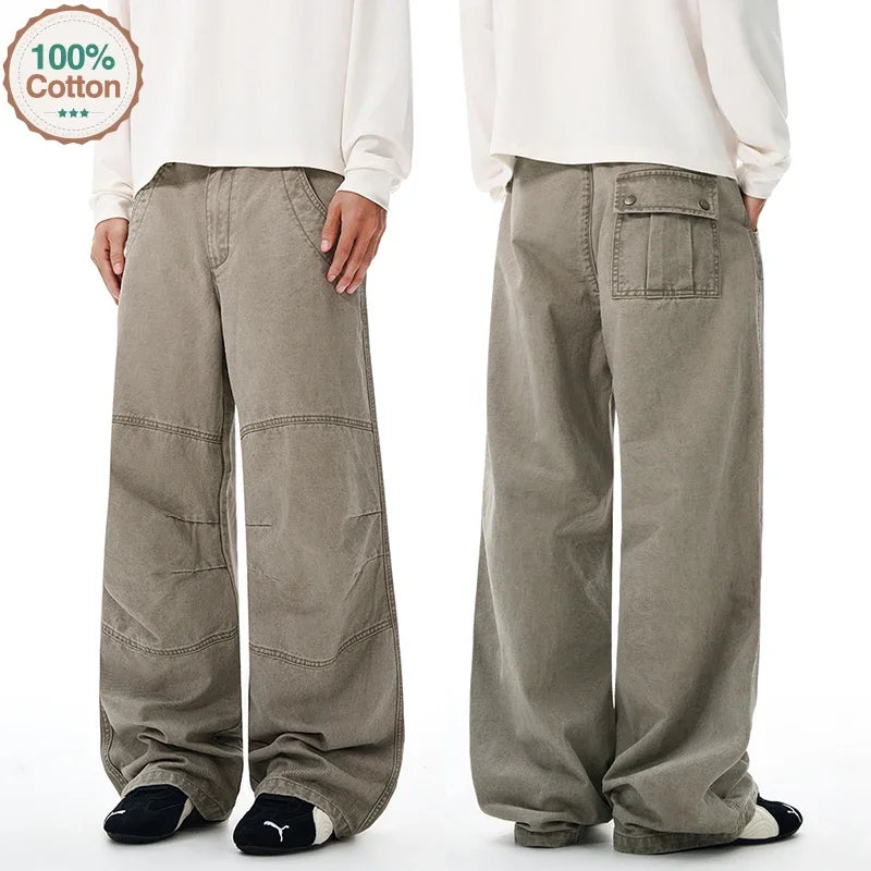 100% Cotton Autumn Men's Loose Trousers Oversized Fashion Spliced Hip Hop Streetwear Wide Legs Baggy Cargo Trousers
