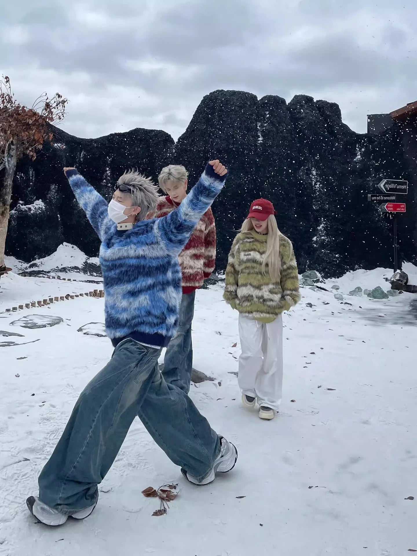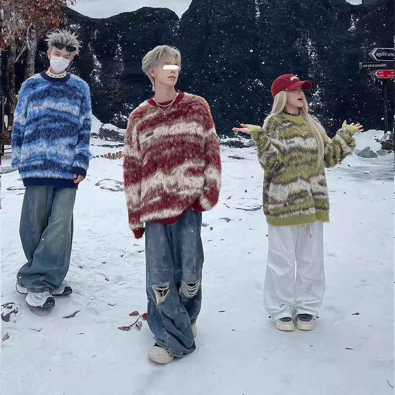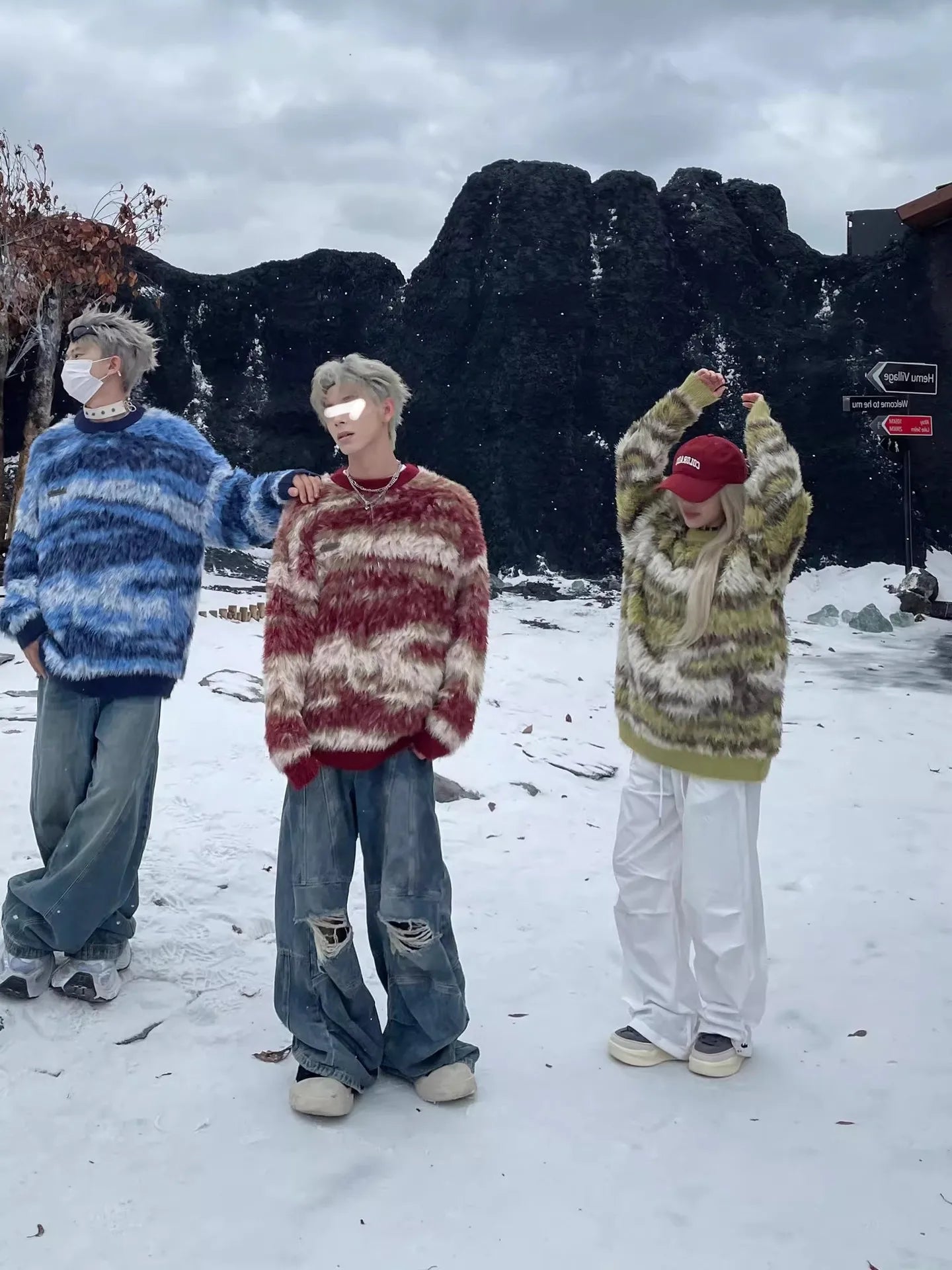 American Trending Men's Sweater Light Luxury Imitated Mink Drooping O Neck Long Sleeve Pullover Winter Premium Knitwear S-2XL