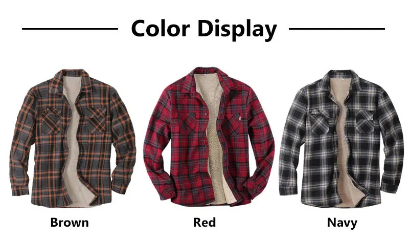 Casual camisas de hombre Winter Thick Plaid Shirts For Men Long Sleeve Sherpa Lined Shirt Jacket and Coats US Size
