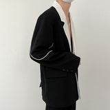 Men Blazer Striped Patchwork Lapel Long Sleeve Streetwear Fashion Casual Suits Men Korean One Button Thin Coats 5XL