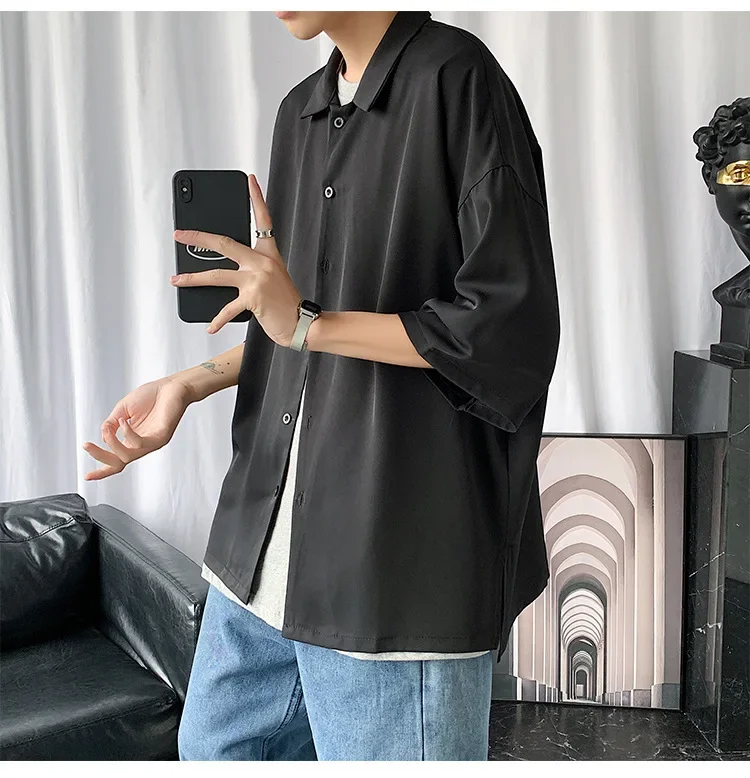 Men Shirts Summer Hip Hop Fashion High Street College Teens Korean Japanese Stylish Thin Рубашки Comfortable Simply Handsome Ins