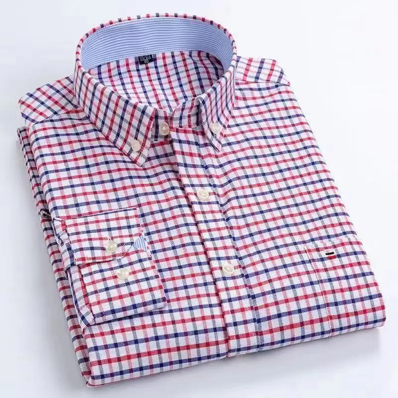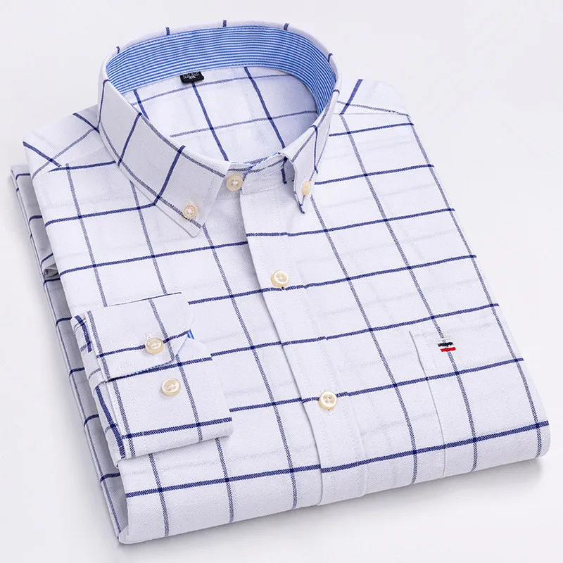 Men's Classic Plaid Oxford Long Sleeve Shirts Pocket 100% Cotton Business Casual Formal Standard Fit Workwear Button Down Shirts