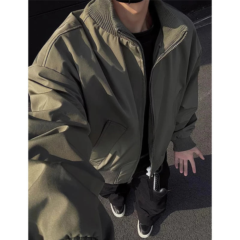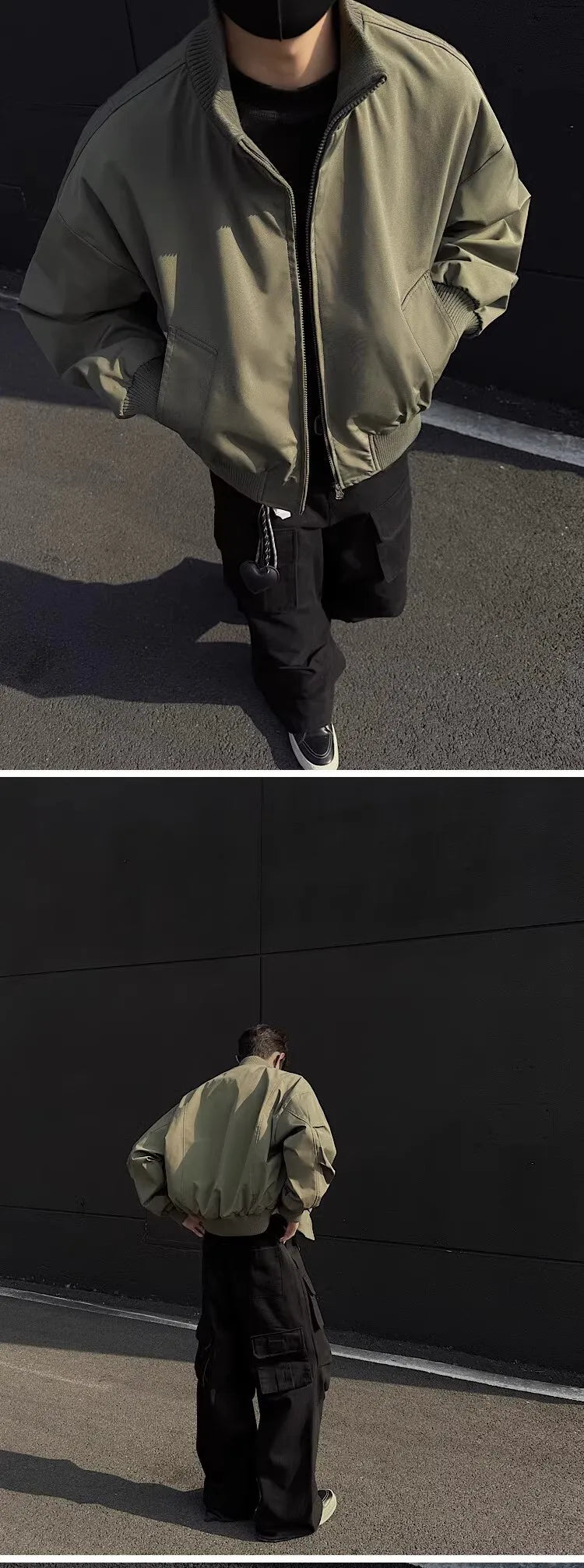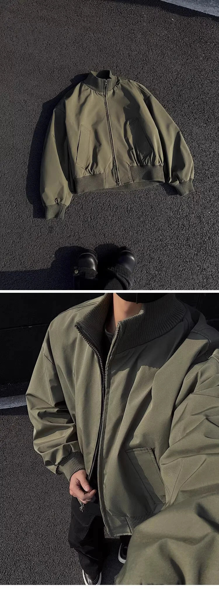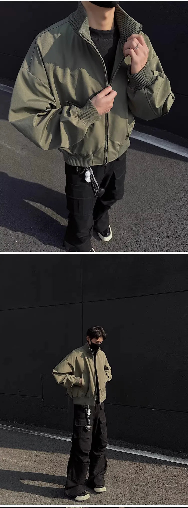 Men's Military Green Flight Jacket Spring Cleanfit American Fashion Cropped Baseball Coats Loose Stand-up Collar Outerwear M-3XL