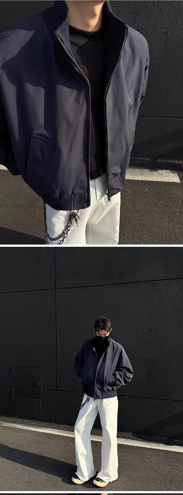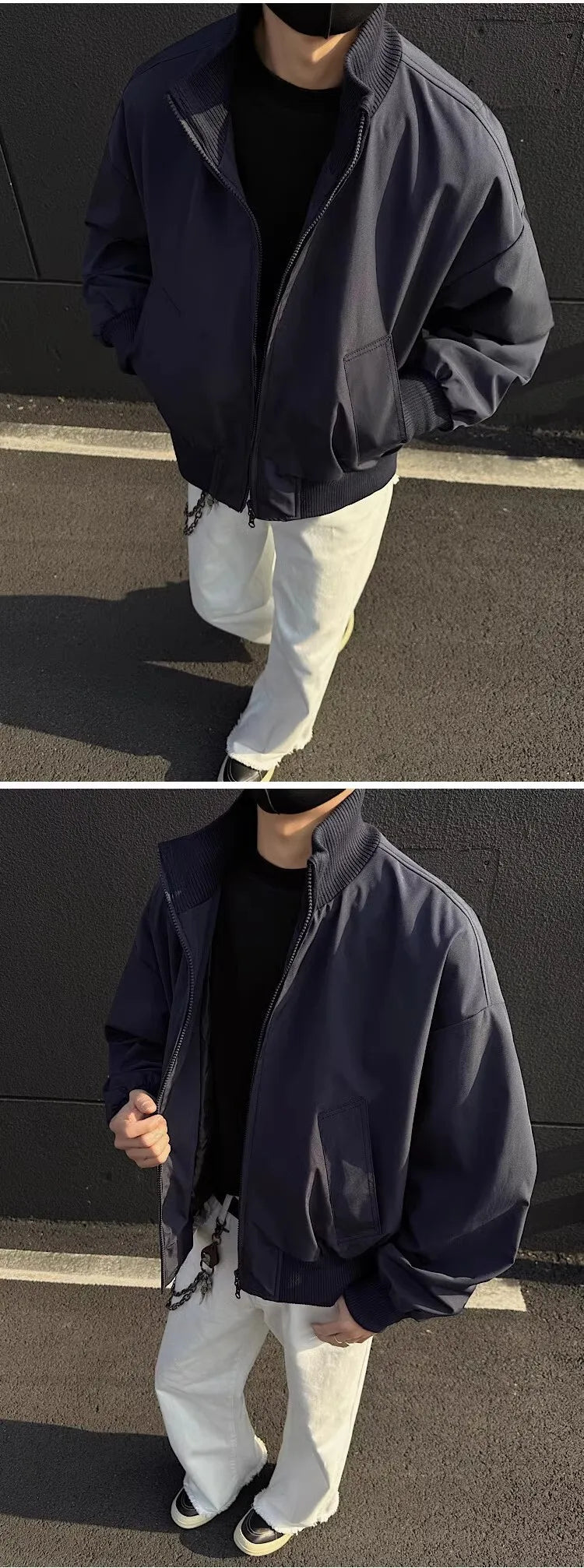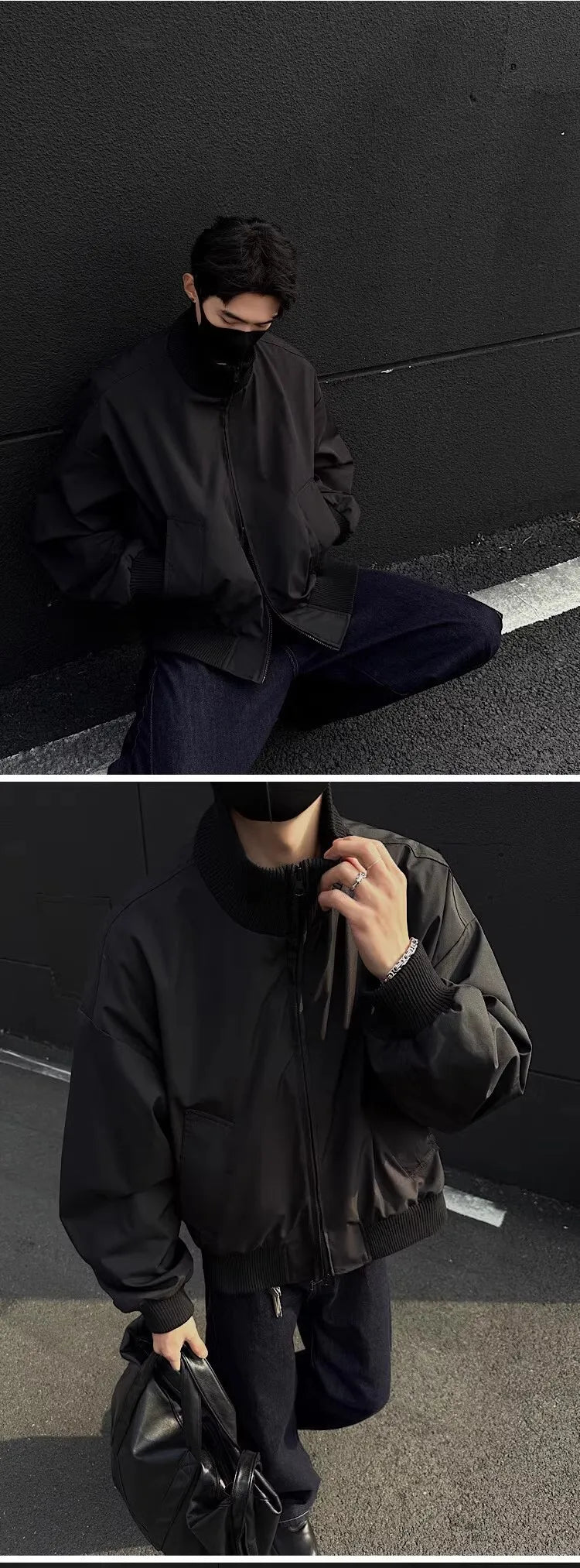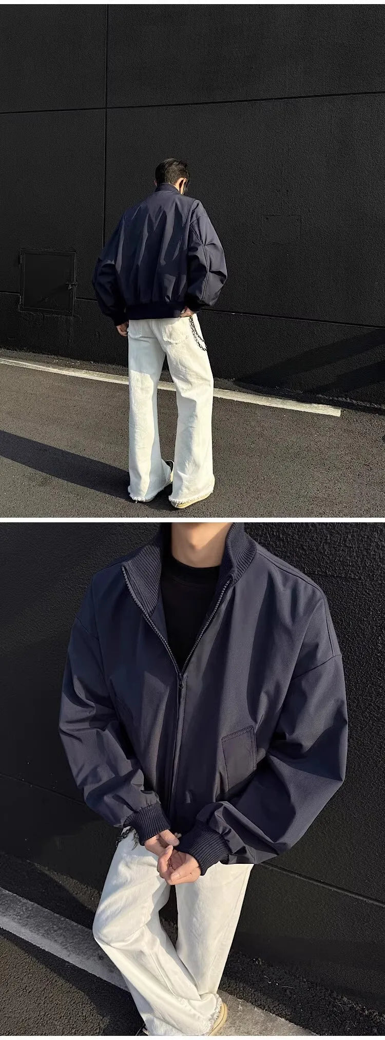 Men's Military Green Flight Jacket Spring Cleanfit American Fashion Cropped Baseball Coats Loose Stand-up Collar Outerwear M-3XL