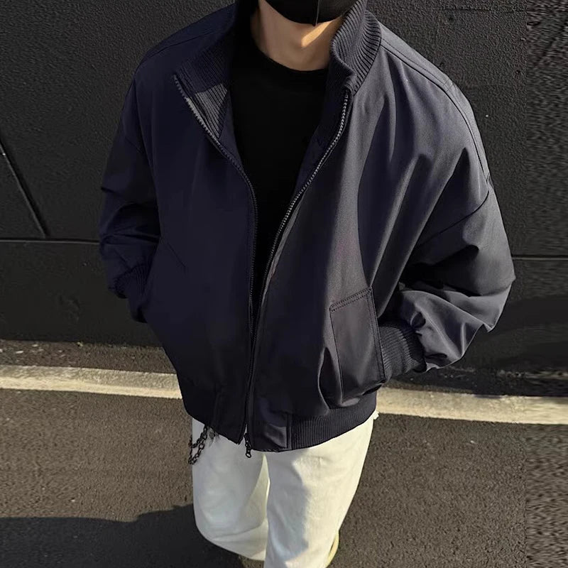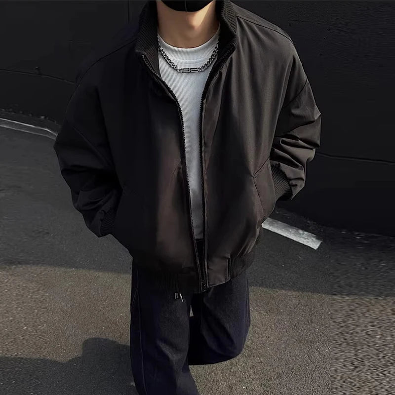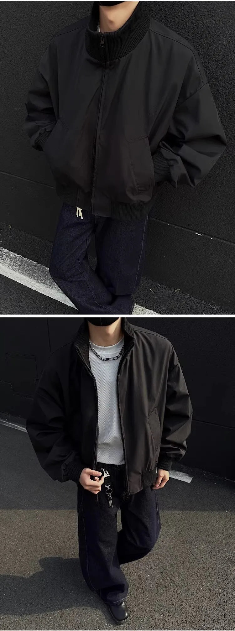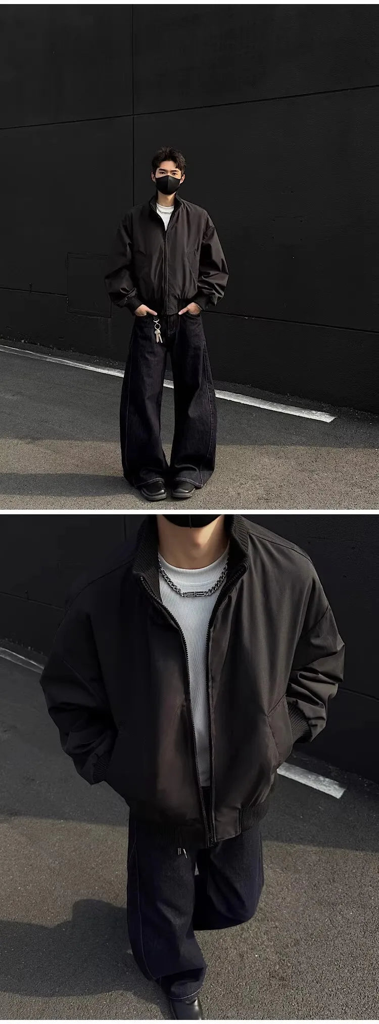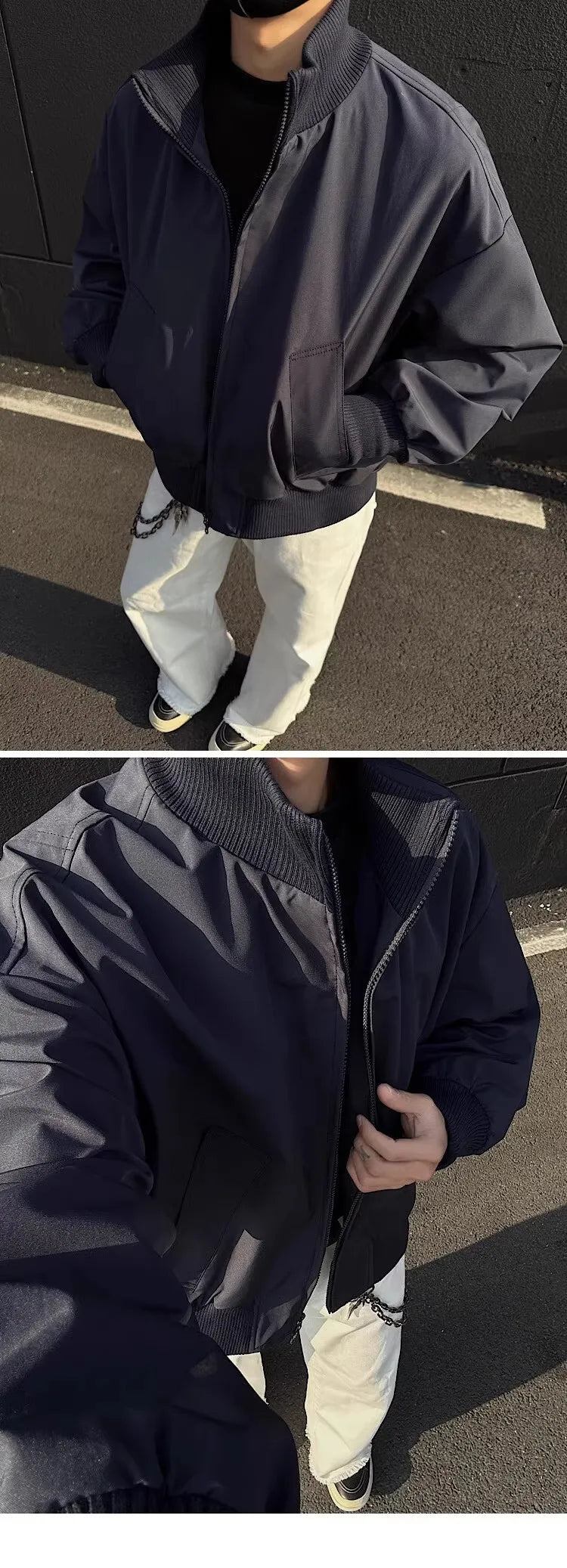 Men's Military Green Flight Jacket Spring Cleanfit American Fashion Cropped Baseball Coats Loose Stand-up Collar Outerwear M-3XL