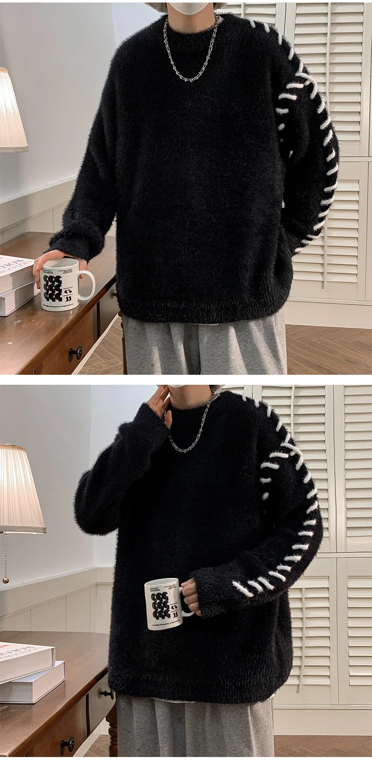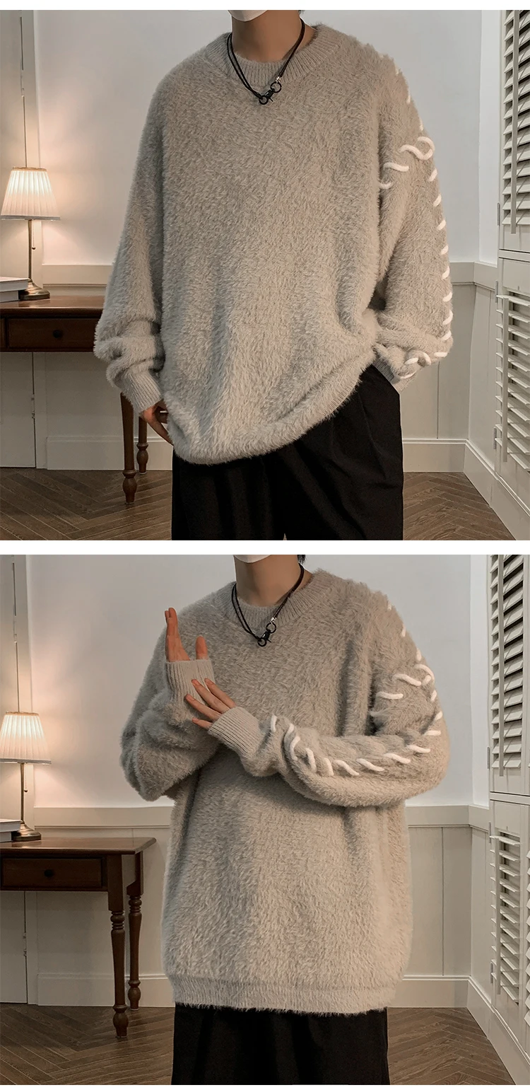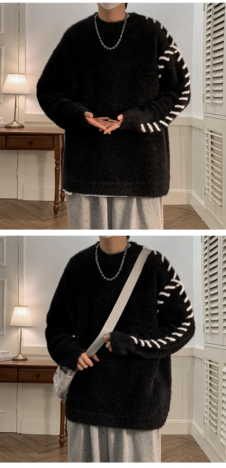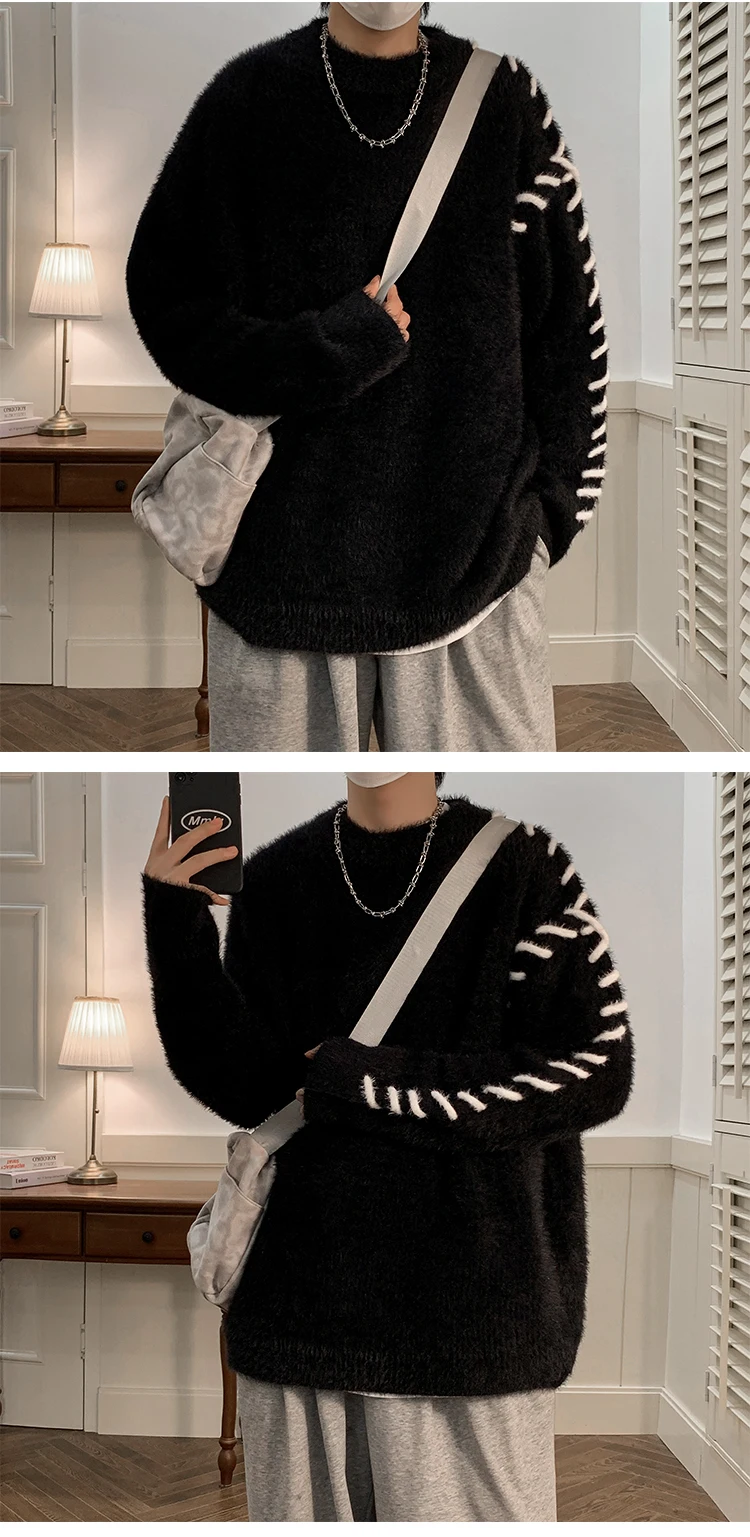 Panelled Baggy Pullovers Men Ulzzang Lazy Casual Knitwear Warm High Street Fashion Soft Plush Sweaters Daily Chic Свитер Мужской