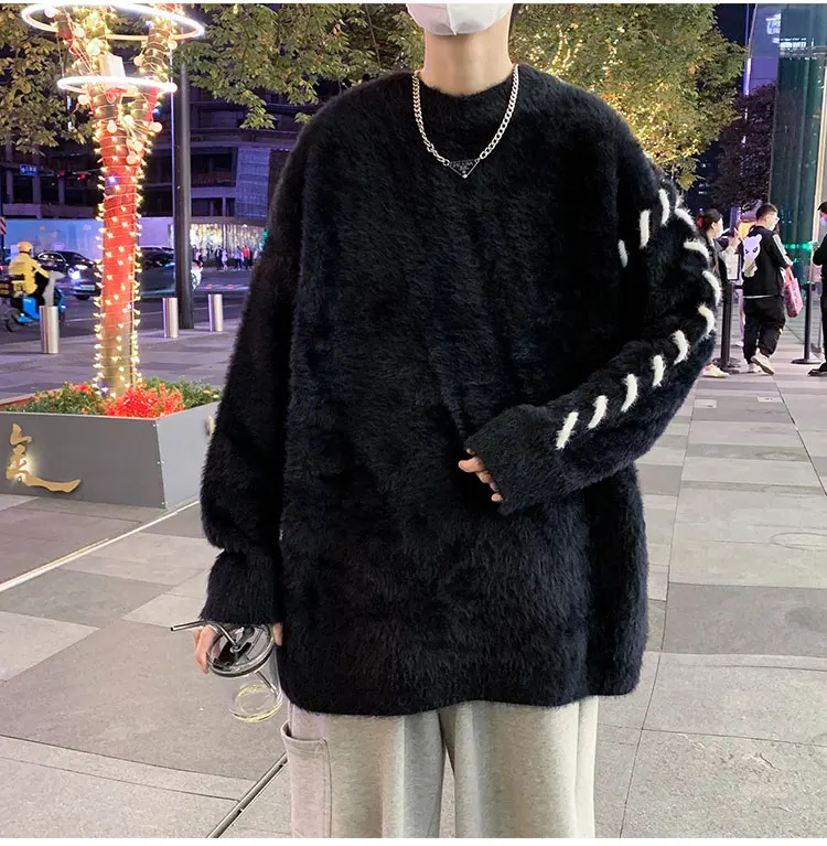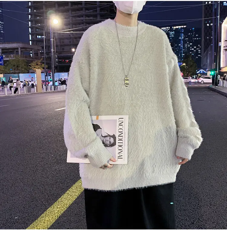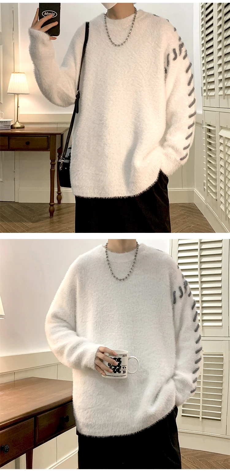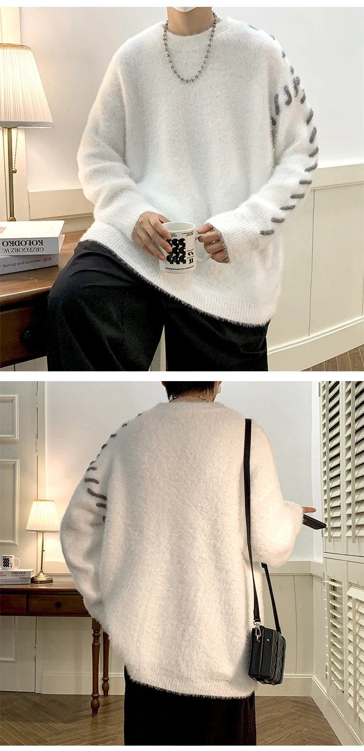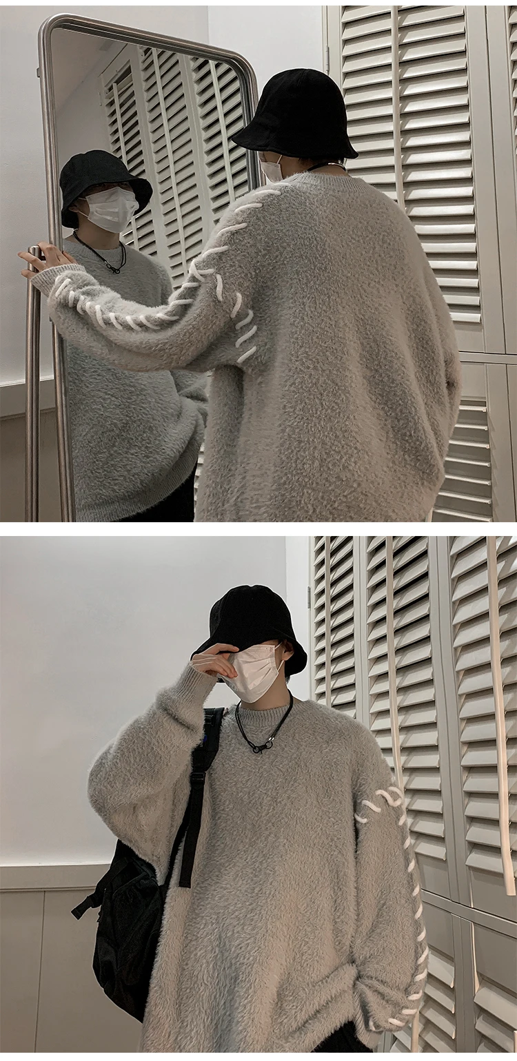 Panelled Baggy Pullovers Men Ulzzang Lazy Casual Knitwear Warm High Street Fashion Soft Plush Sweaters Daily Chic Свитер Мужской