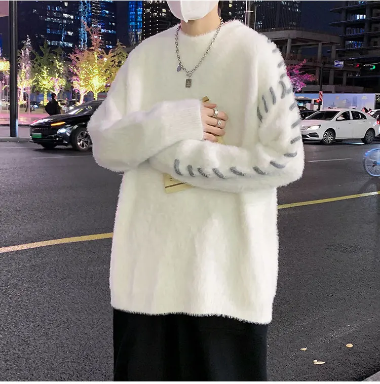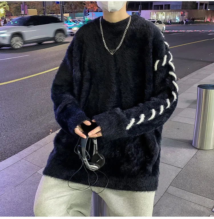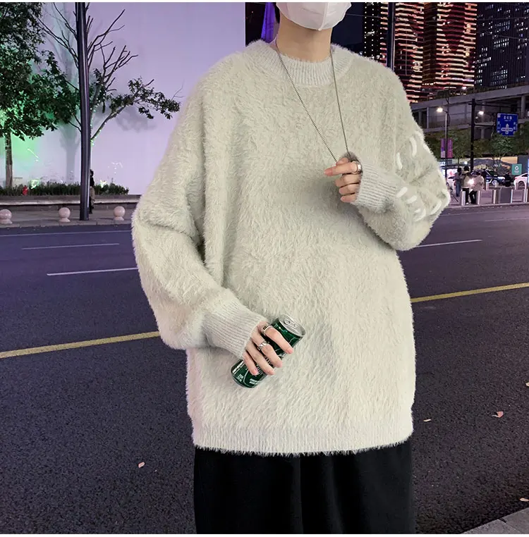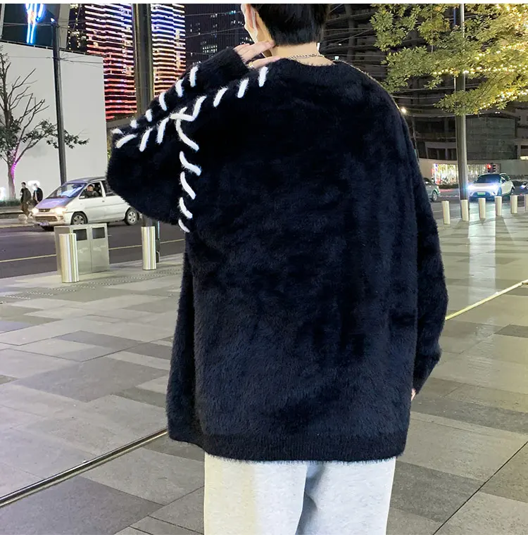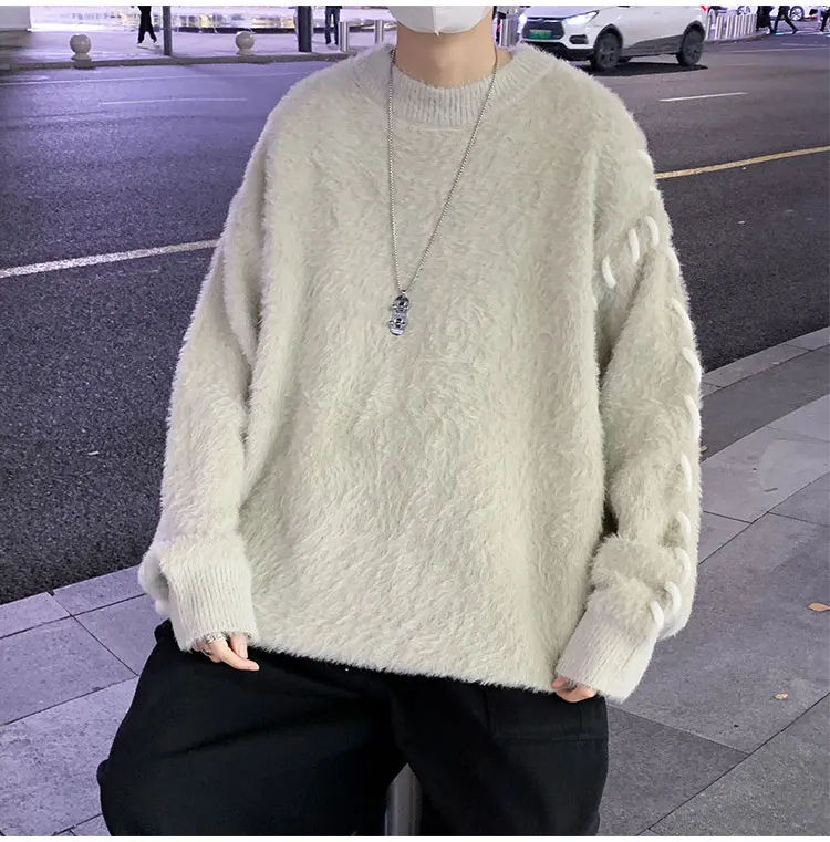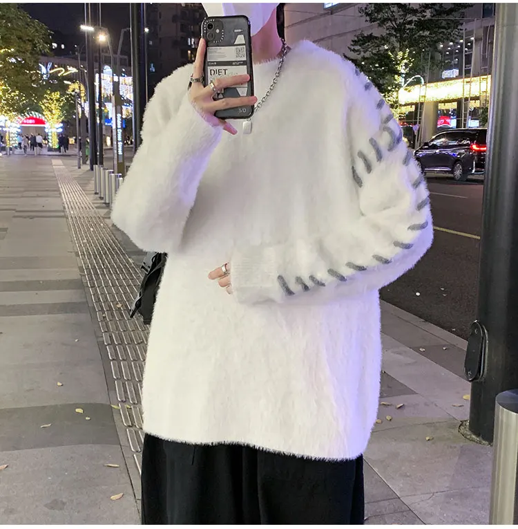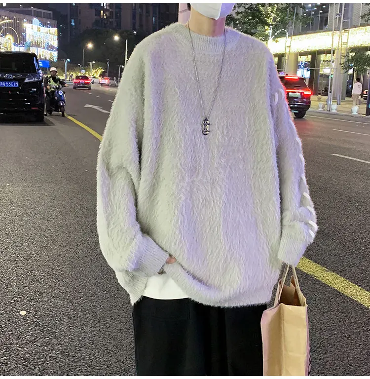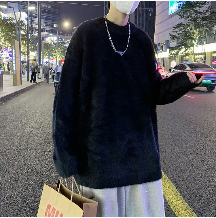 Panelled Baggy Pullovers Men Ulzzang Lazy Casual Knitwear Warm High Street Fashion Soft Plush Sweaters Daily Chic Свитер Мужской