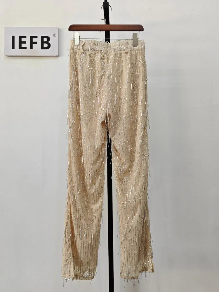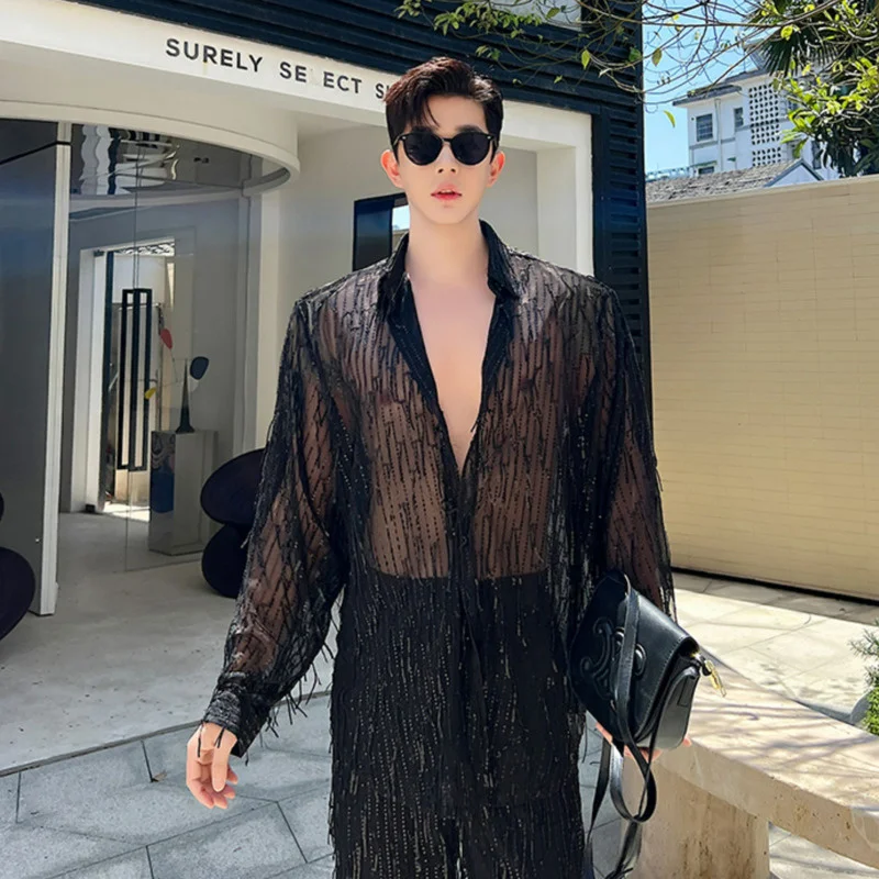 Personality Menwear Men's Casual Sets Sequins Tassels Two-piece Trendy Long Sleeve Shirt Straight Pants Autumn