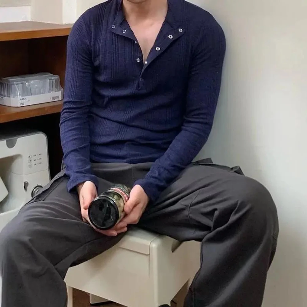 Sweater Mens Striped Texture Henry Collar Knitted Pullover Autumn Casual Versatile Unisex Daily Undershirt Men's Clothing