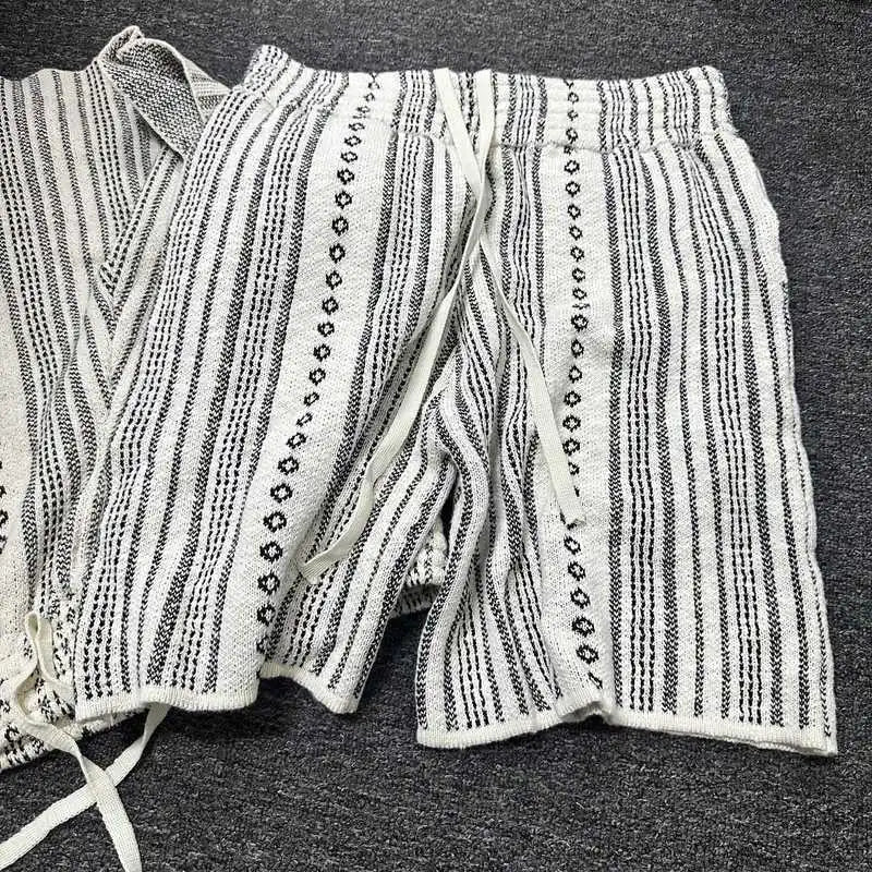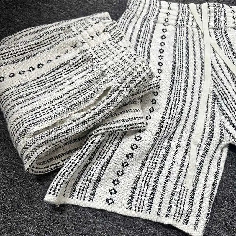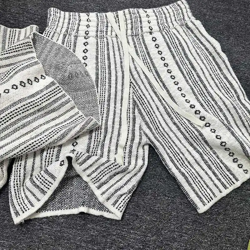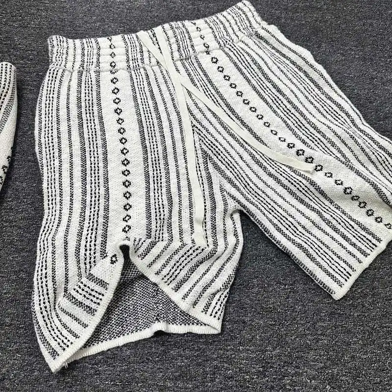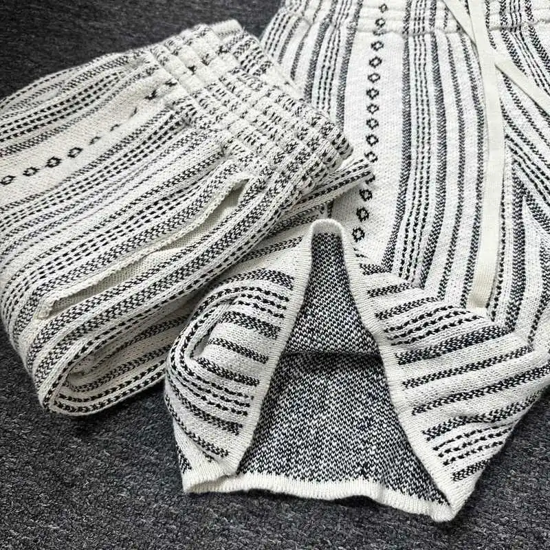Vintage Knitted Shorts Male Striped Retro Pants Drawstring Half Pants Fabric Heavy Drooping Trendy Capris Pants
